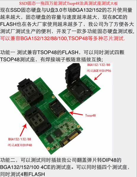 SSD固态IC一拖四万能测试治具Tsop48座测试大板SM2246主控