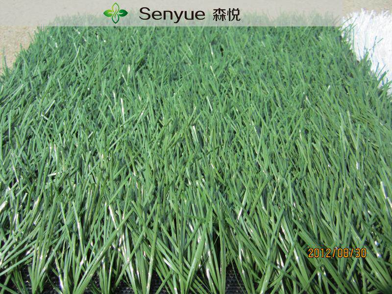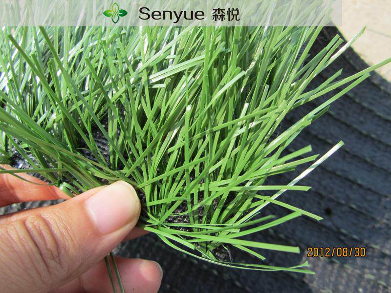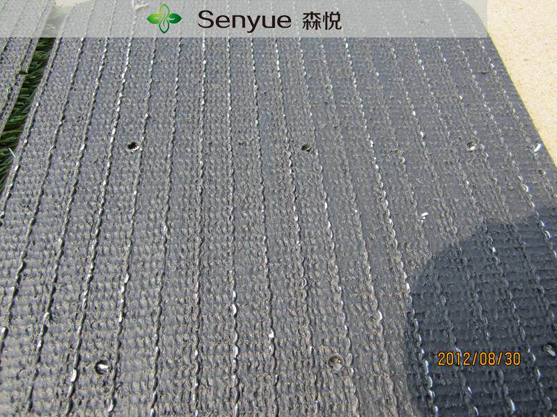 草坪底部背胶均匀,森悦草坪背胶均为机器背胶,产品背胶足量,草坪拔出力好,使用年限久是森悦草坪的特点。