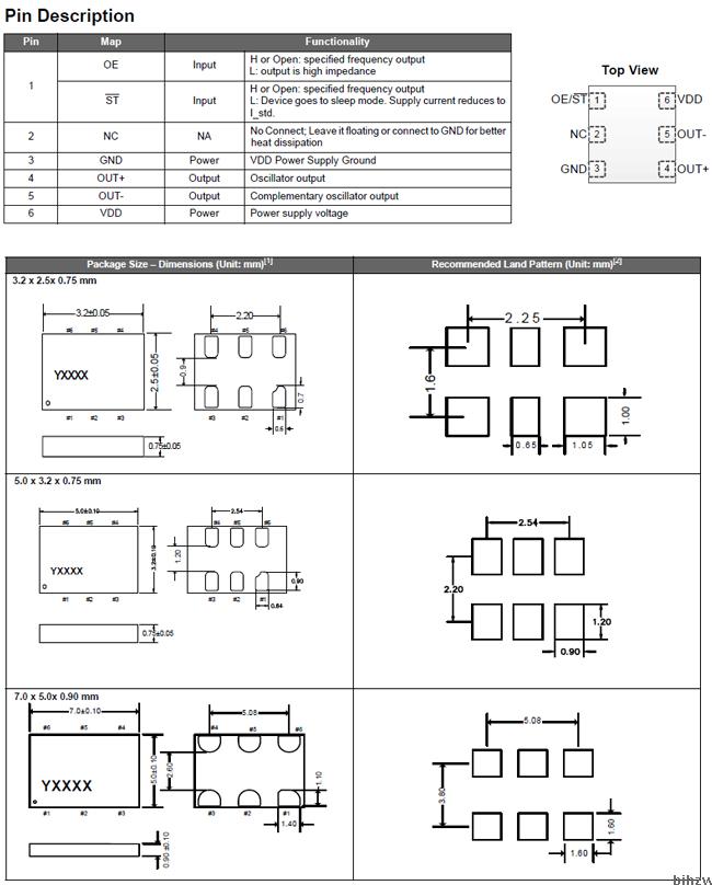 . 业界标准针脚规格3.2×2.5mm,5.0×3.2mm,7.0×5.0mm封装