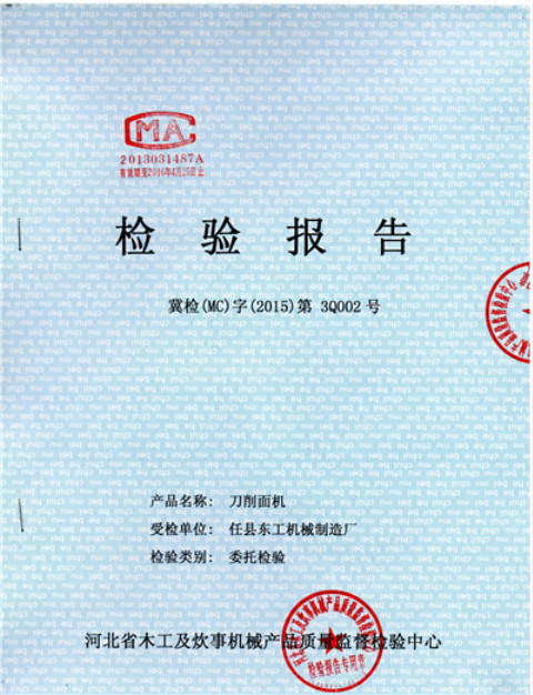 投料:将面团切成条状(可放入料斗被送面辊卷入面桶而不架空为宜,长度不限),投料不可间断,切出的面条即刻便飞出盘外(初始切面薄而碎正常后可重新投入)。