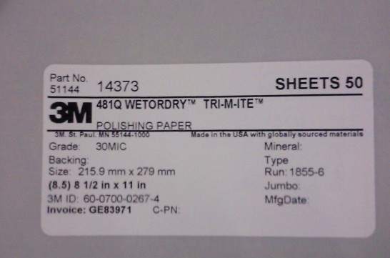 3M 481Q\精密研磨砂纸 抛光砂 3M薄膜砂纸 8.5寸*11寸*30mic