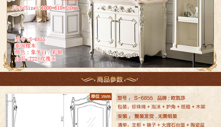 欧式浴室柜,实木浴室柜,橡木浴室柜-欧凯莎卫浴90cm长