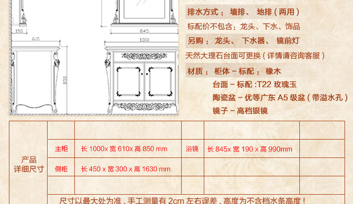 欧式浴室柜组合柜 高端质优实木浴室柜6931