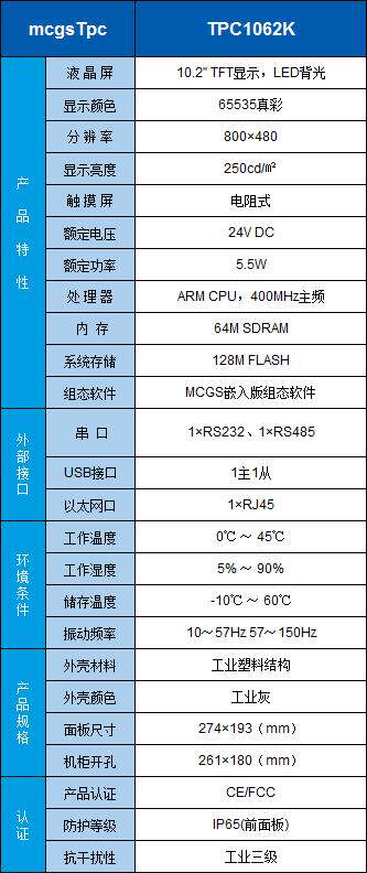 10.2寸昆仑通态触摸屏 TPC1062K全新原装正品 代替 TPC1062KX 带以太网接口(带网络,高性价比,取代TPC1062KS,TPC1062KX)