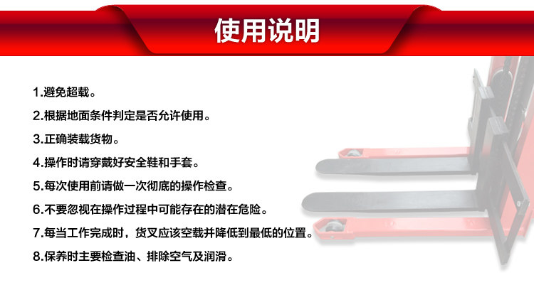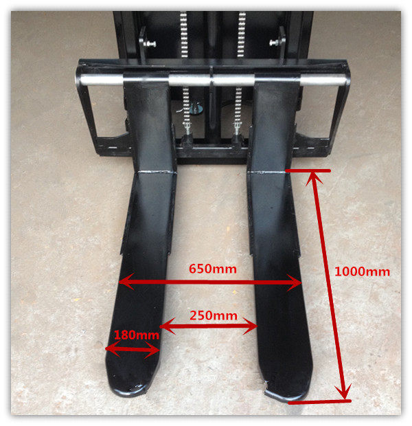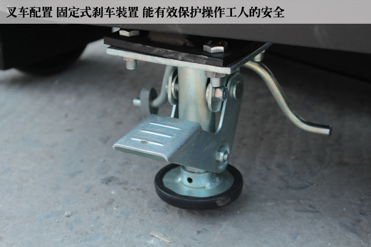 ● 货叉可以移动范围较大,可调节至车腿外两侧,自由调节宽窄度,适用性较强。