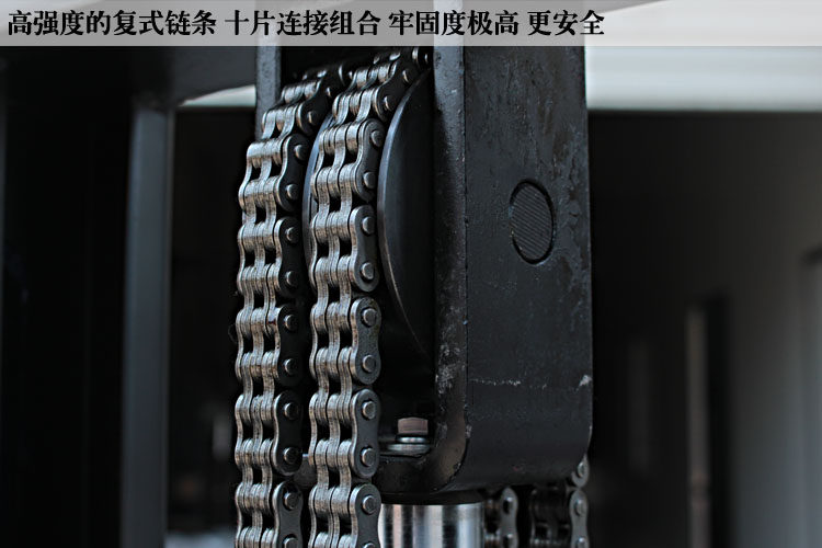 ● 采用高强度复式链条,十片连接组合,牢固度极强,重货持久不断裂.黑心商家使用普通传动链条,压低成本。如果货物止顶普通链条承受不了压力突然断裂对操作人员的人生安全带来极大隐患!成本相差200元左右。