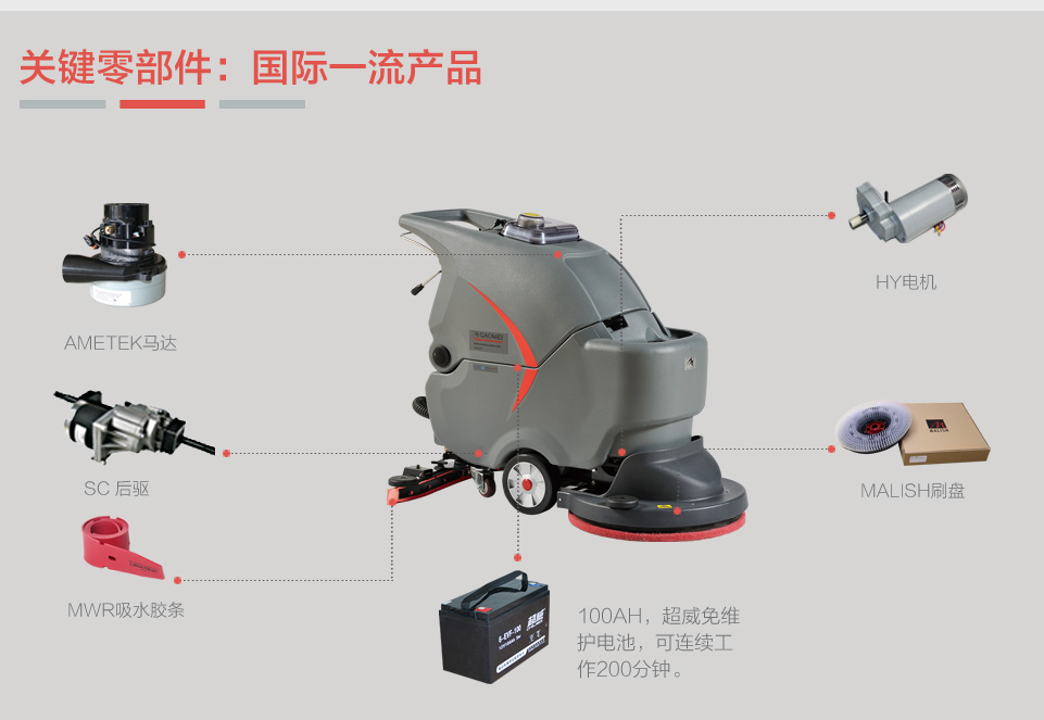 ◎ 超大刷盘,自驱行走。 ◎ 可靠耐用,价格实惠。 ◎ 大大提高清洁效率,降低清洁管理成本。 ◎ 显著提高使用场所清洁卫生水平。 |