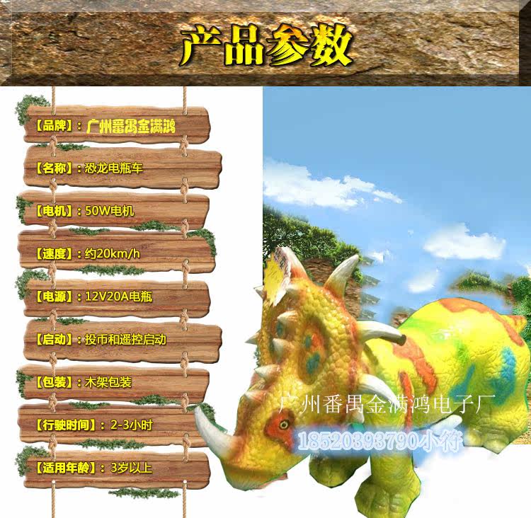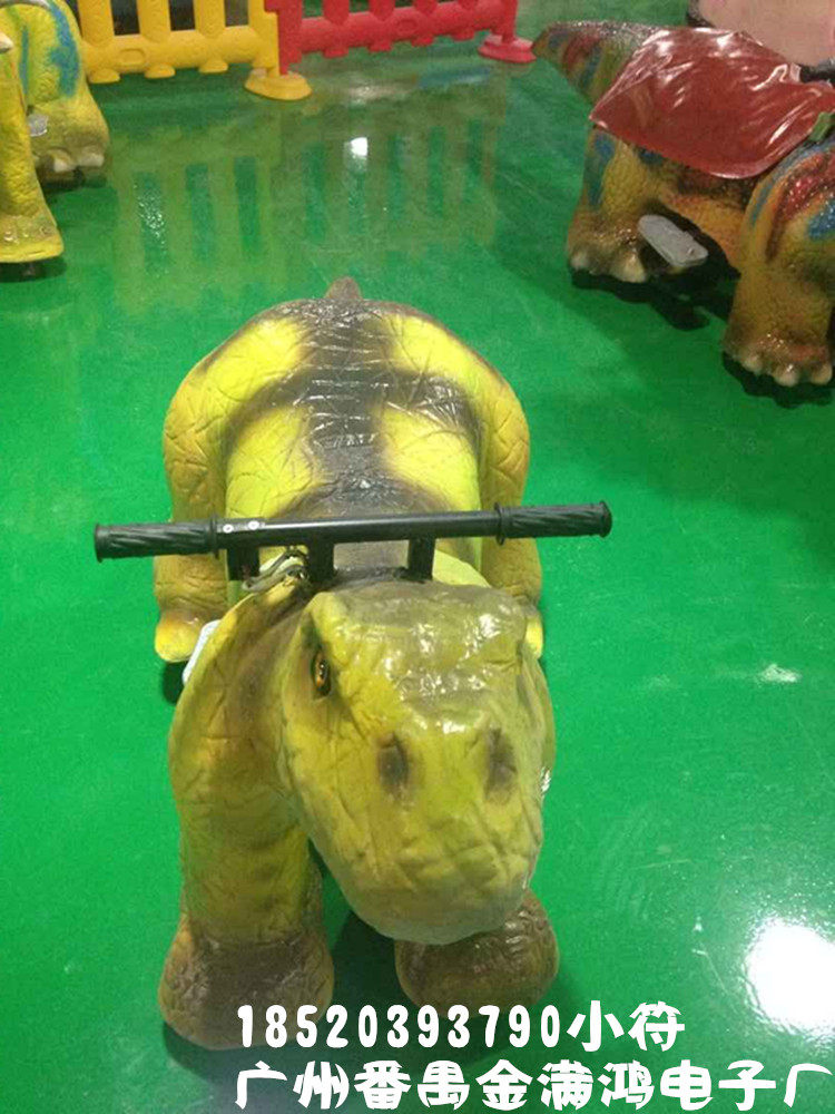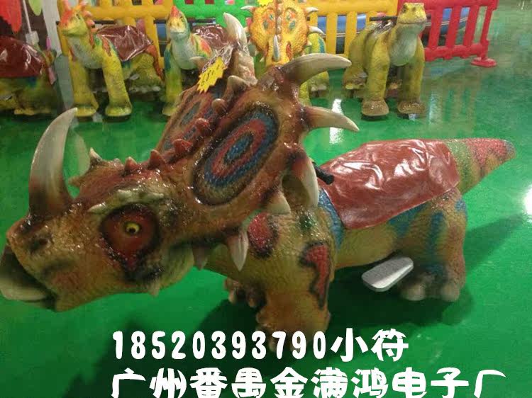 恐龙车,采用内部电瓶车结构,外部海绵造型,玻璃胶制皮上色,形象逼真自然,带有音乐,遥控器控制,适用于房地产开盘庆典游乐园以及儿童玩乐设施