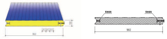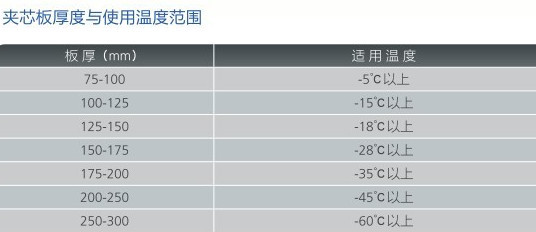 | 100(±2) | PU聚氨酯 | 0.35(±0.02) | 冷藏、净化、隔间 |