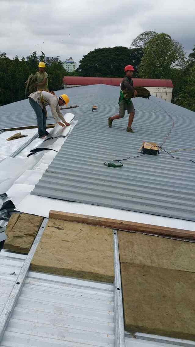 方法6、铁皮屋顶上:铁棚已做好的,直接用阳光板专用铝合金压条和自攻螺丝钉,把隔热膜压在铁皮屋面上,能防风就行;