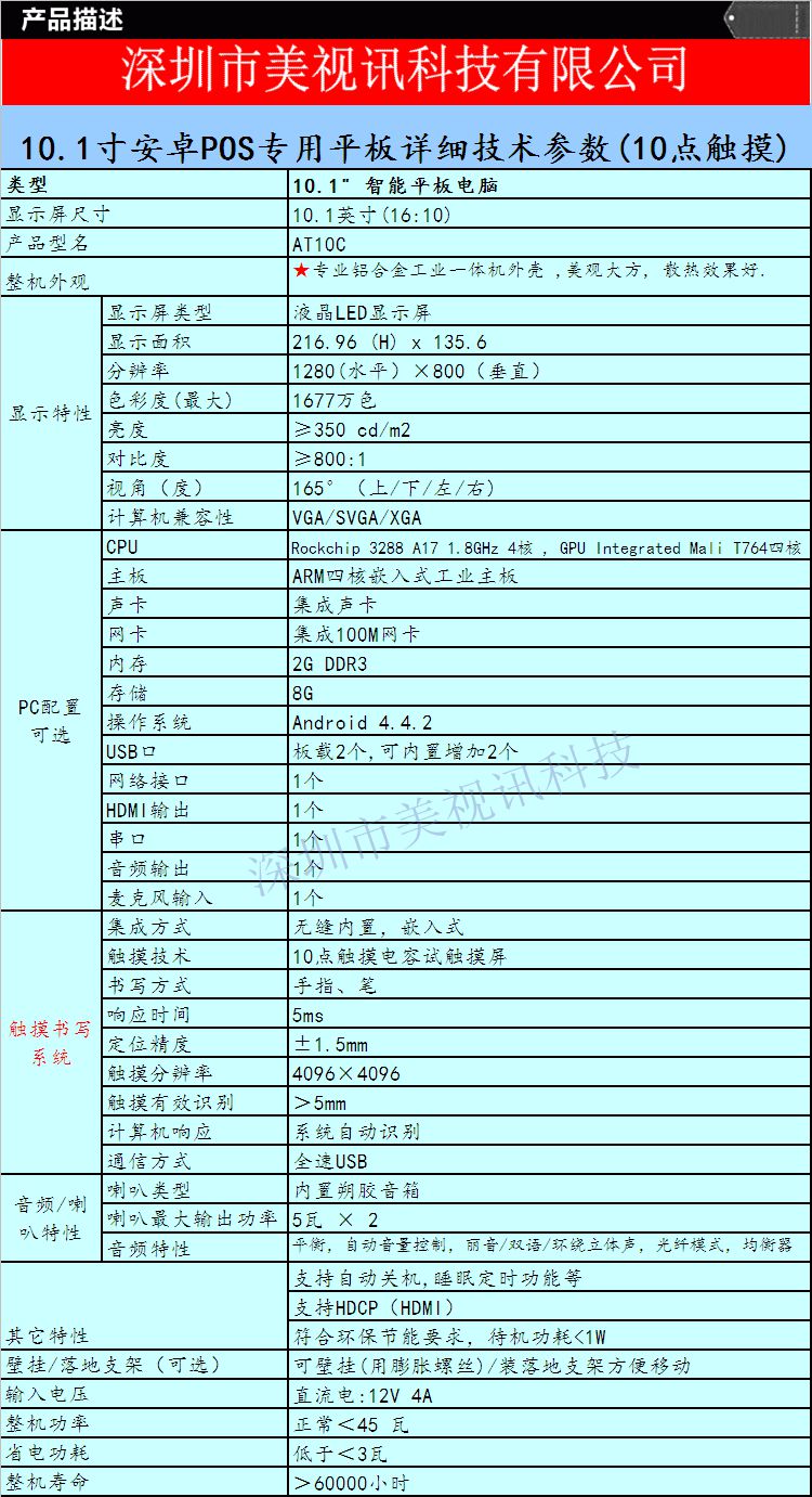 10.1寸安卓系统POS专用触摸一体机/餐饮点餐一体机/电容一体机