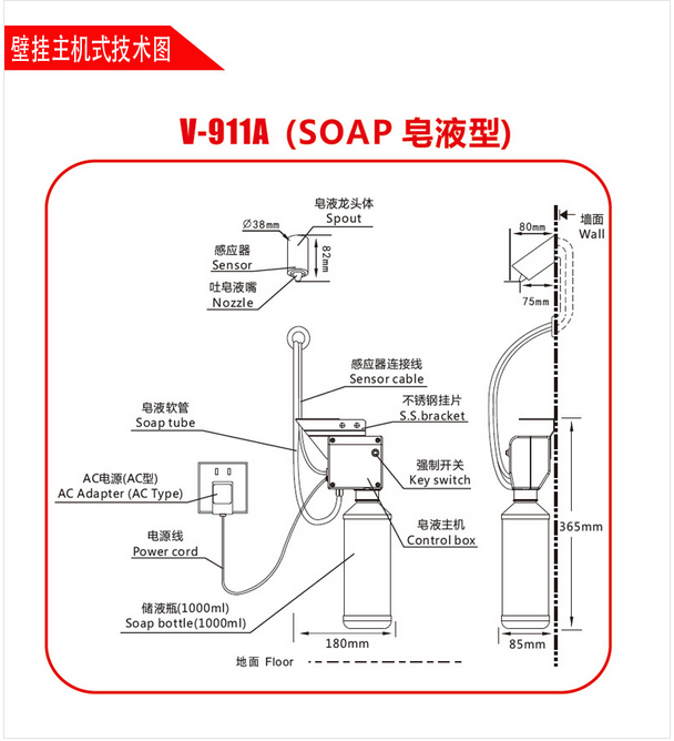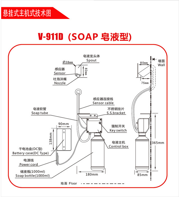 2 .产品采用红外线自动接收和发射信号技术,能免接触自动感知给皂。更简单卫生!