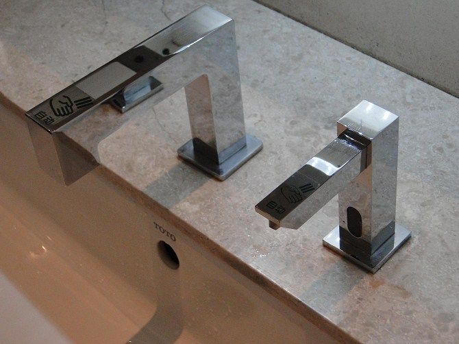 安装效果图:台上盆加高款感应皂液器搭配感应水龙头