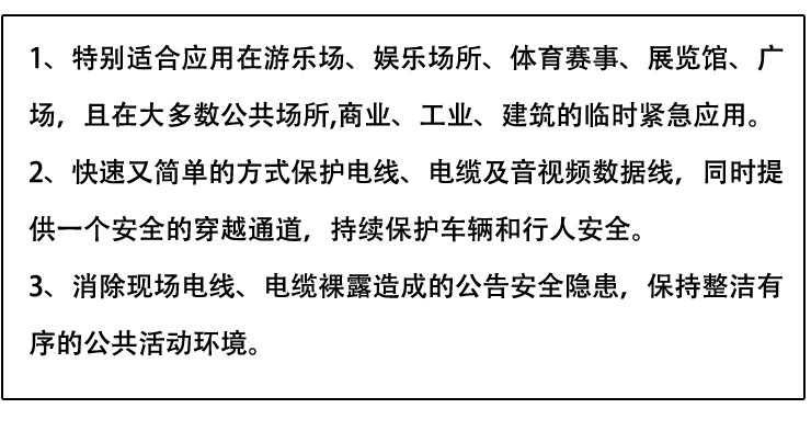 产品特点:顶部使用PVC盖板,全体优质工程橡胶,两边衔接卡扣稳定;底座两端蜂窝状设计有更强的稳固性,可以更好吸附在地面上。