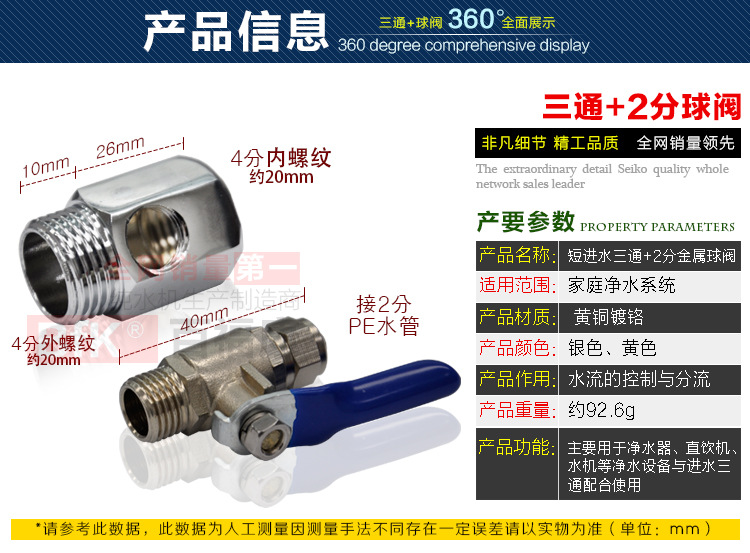 【产品品名】短进水三通+2分金属球阀
