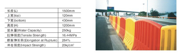 产品特点:用进口PE制造,盛水后更具缓冲弹性,能吸收强大的冲力有效地减少对汽车、路人及围栏内工作人员的伤害。颜色鲜明,清楚明确地指示行车路线。水马是一种用于分割路面或形成阻挡的塑制壳体障碍物,通常是上小下大的结构,上方有孔以注水增重(故称水马,注:不可充水的木质或铁质可移动障碍物称为拒马),部分水马还有横向的通孔以便通过杆件连接以形成更长的阻挡链或阻挡墙。