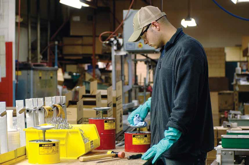 盛漏式活塞罐帮助您安全地分装易燃液体和溶剂,避免浪费或接触液体。新型“智能泵”有助于简化您的擦拭作业。由耐化学腐蚀的Ryton® 和黄铜制成,再次向盛漏注入液体时,泵座设计可减少底部液体残留。按下泵组件,可使盛漏充满液体。剩余液体将安全地流回罐中。穿孔的上底盘也具有消焰器的功能。顶部边缘的护缘设计,保障顺畅、无故障地润湿抹布。