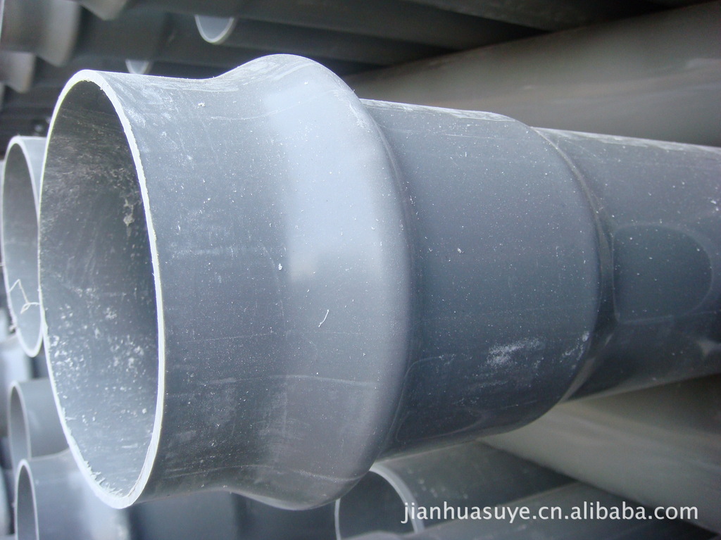 以PVC树脂粉为主原料,加入适量助剂,经混合、挤出、定径、切割和扩口等工艺加工成型。