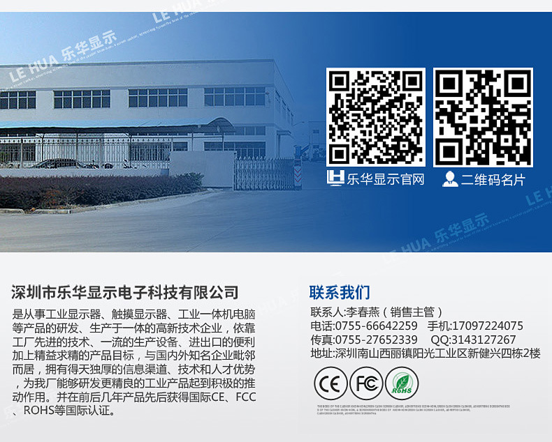 深圳市乐华显示电子科技有限公司,是一家集研发、生产、销售于一体的工控机、嵌入式计算机、加固类计算机的专业设备提供商,提供各种尺寸和规格的工控机,网络整机,工业嵌入式整机,工业平板电脑,嵌入式工业主板,级加固计算机。
