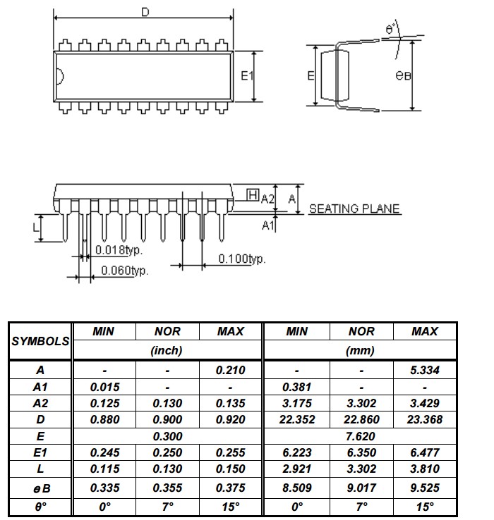 封装外形尺寸(DIP-18直插):