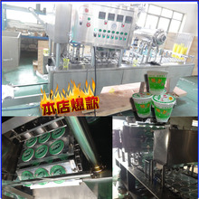 BG60A-4QC型全自动充填封盖机,采用不锈钢机身,下杯、放盖、封口均一次完成,严格符合食品卫生的要求。该机主要用杯、盒、碗装牛奶、酸奶、方便面、藕粉、米线等食品、饮料的灌装封盖,也可以用于其它异型装的封盖。自动下杯,自动放盖,自动封口、自动出杯;采用进口无级变速系统,可调节生产速度;采用凸轮分度器,使下膜定位精确,机器运转平稳;吸盖与封口同时完成,下膜移动对盖膜定位精度无影响;准确的二次封口、封口压力可调整,封口强度好;操作简便、安全。 方便面的工作流程:自动放碗、手工放面及佐料、自动放盖、自动封口、自动退碗。