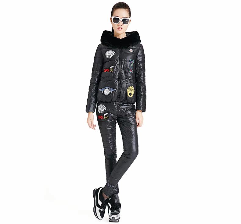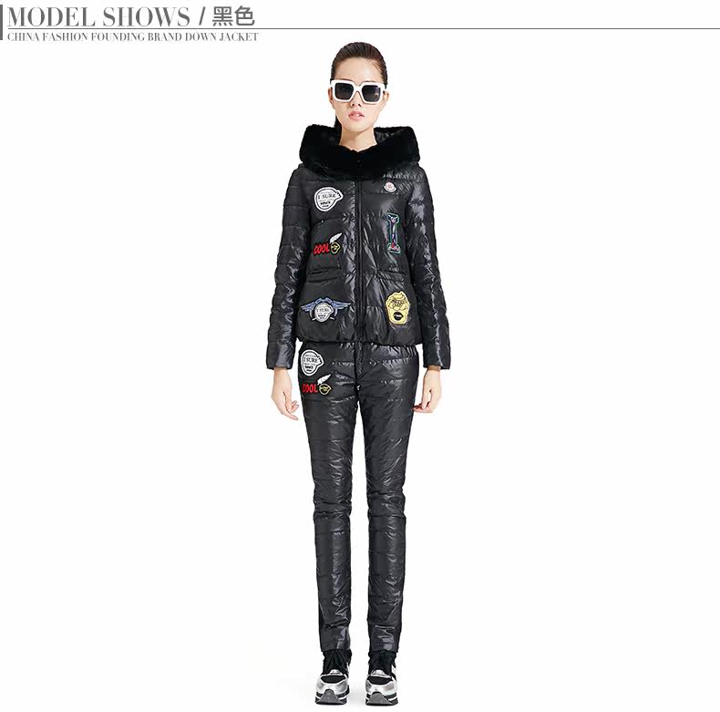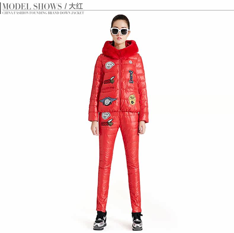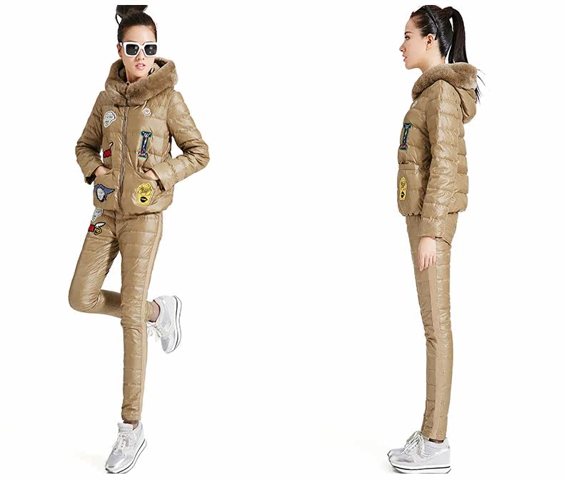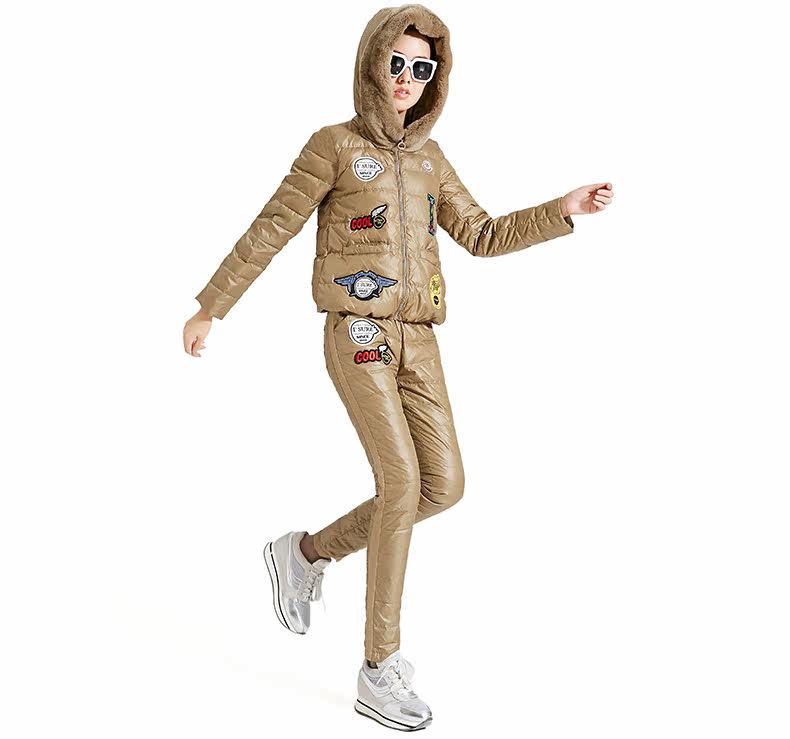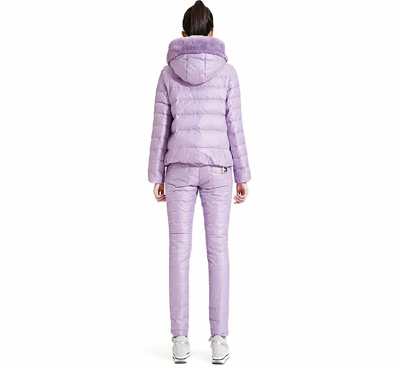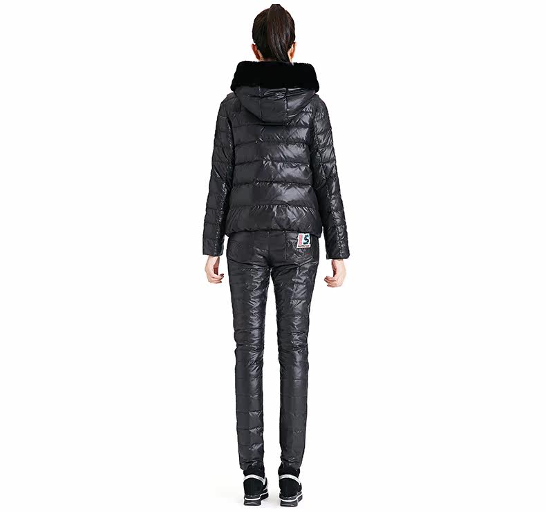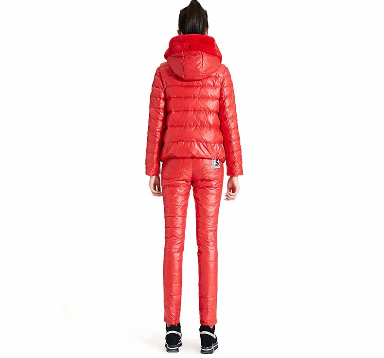 艾尚雪专柜同步新款獭兔毛修身短款两件套羽绒服套装16210