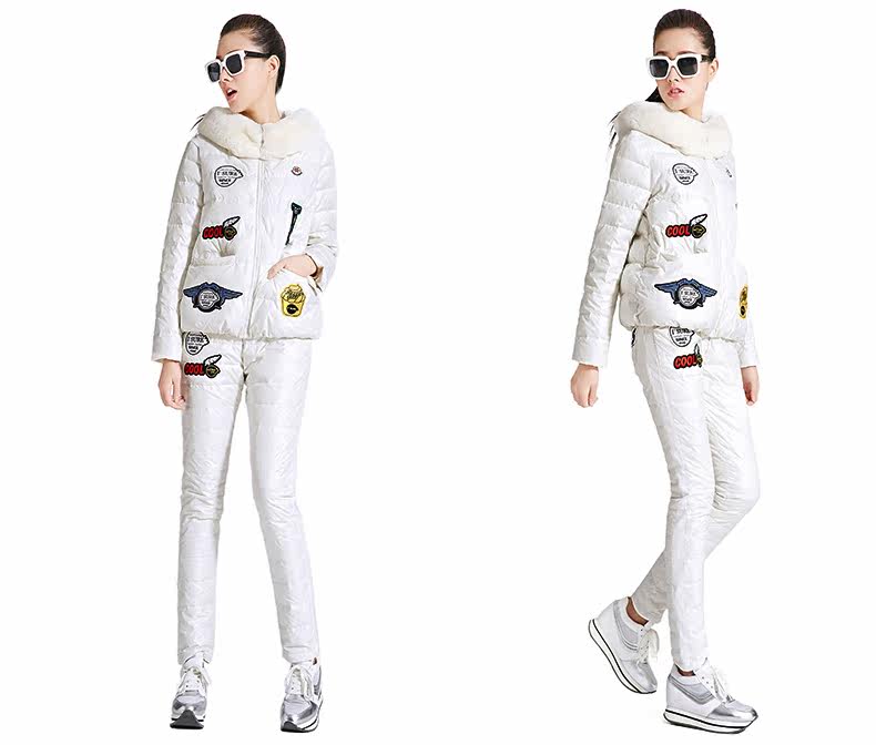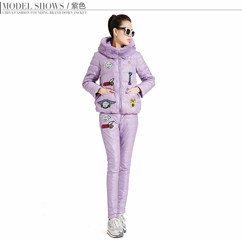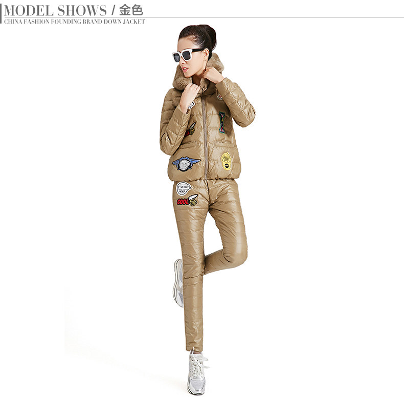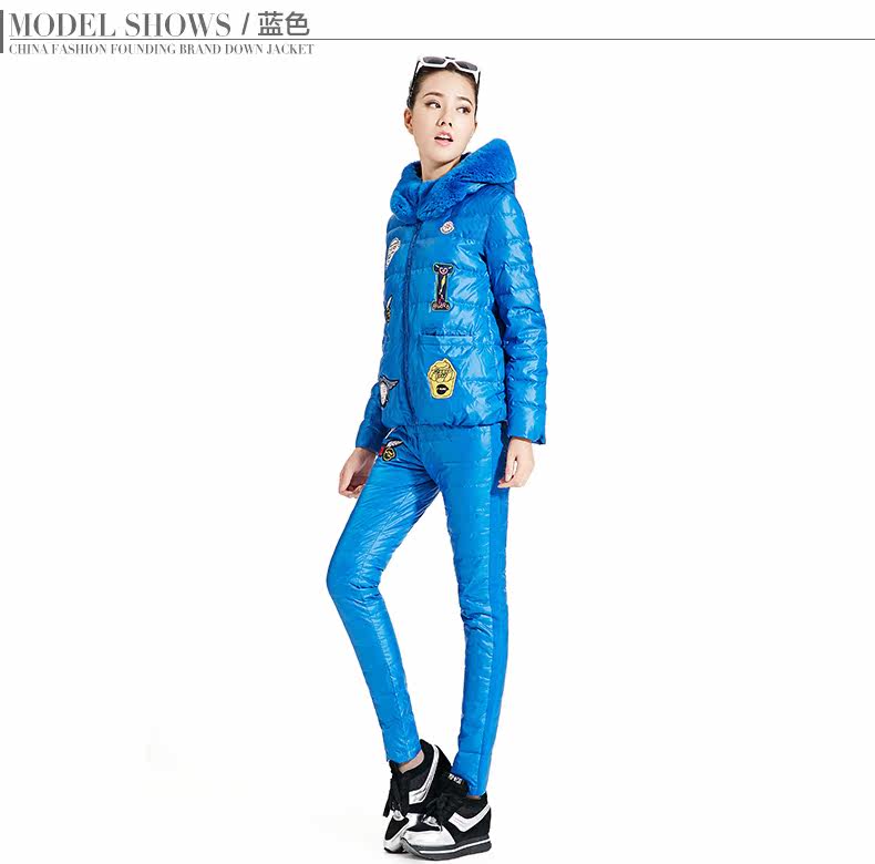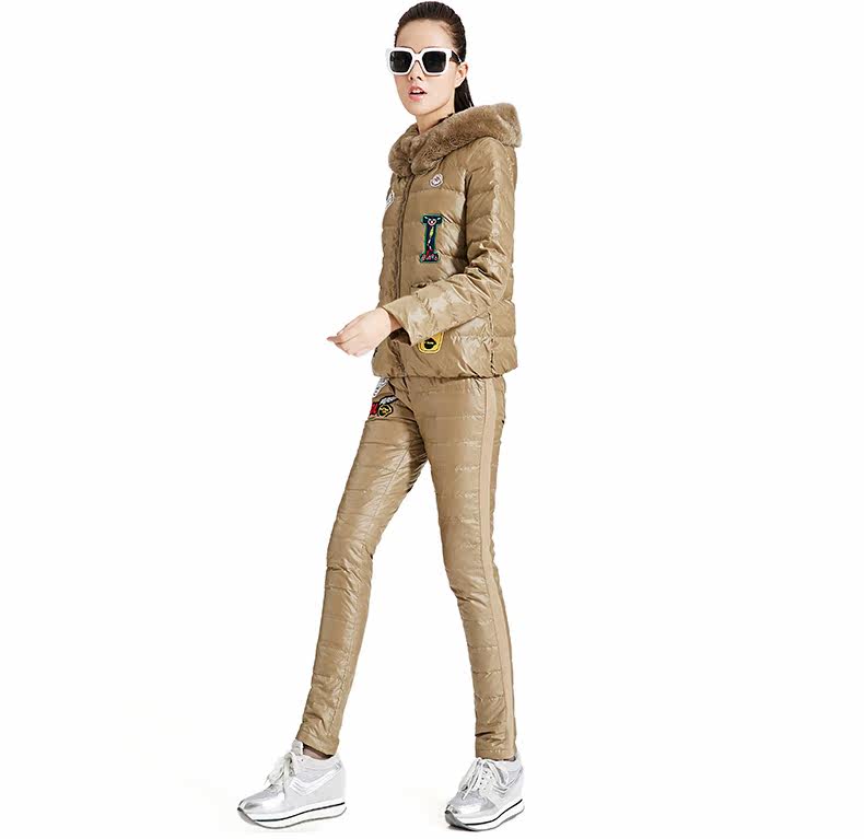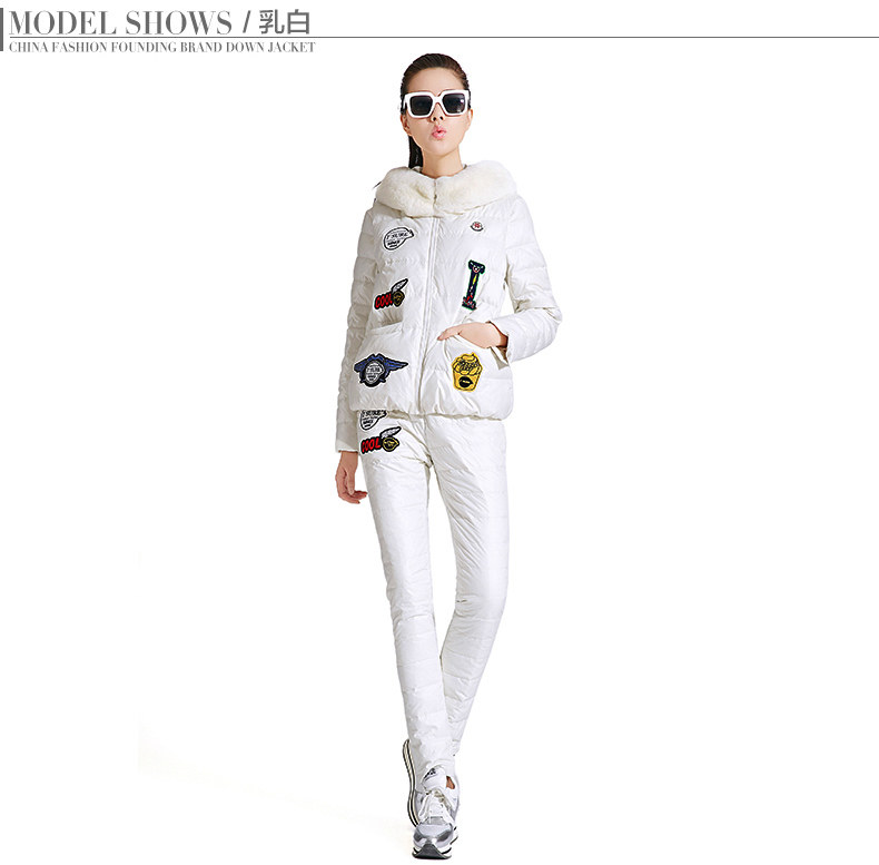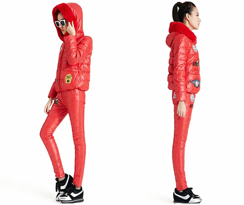 艾尚雪专柜同步新款獭兔毛修身短款两件套羽绒服套装16210