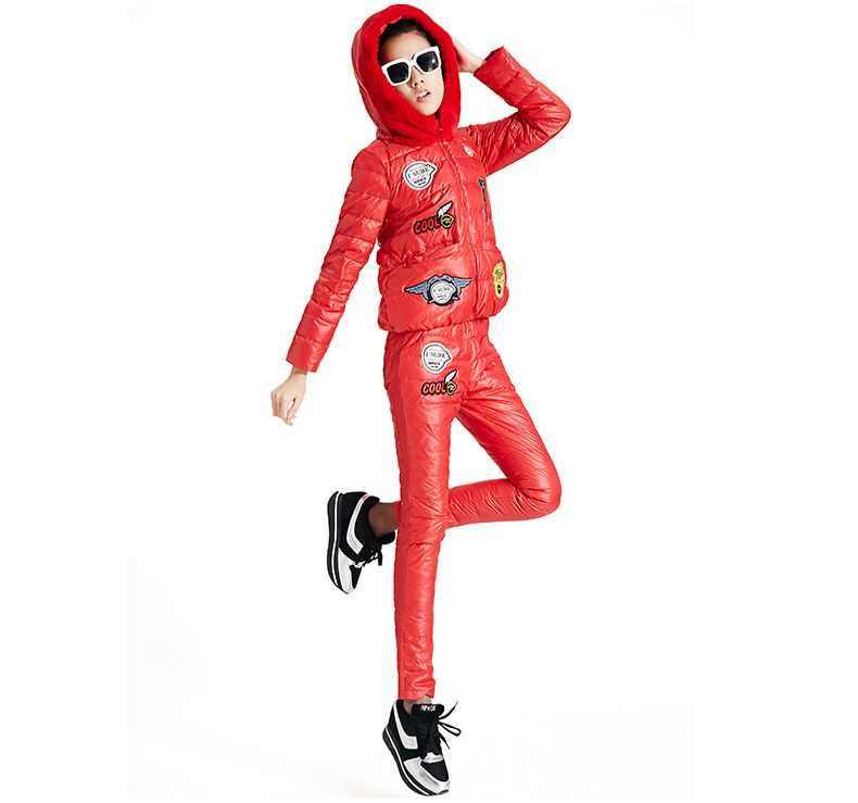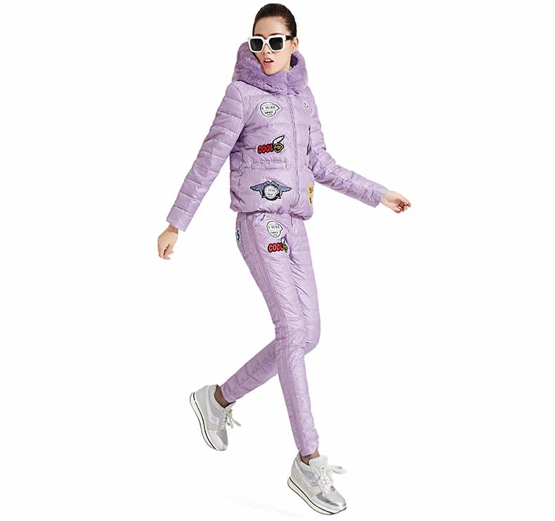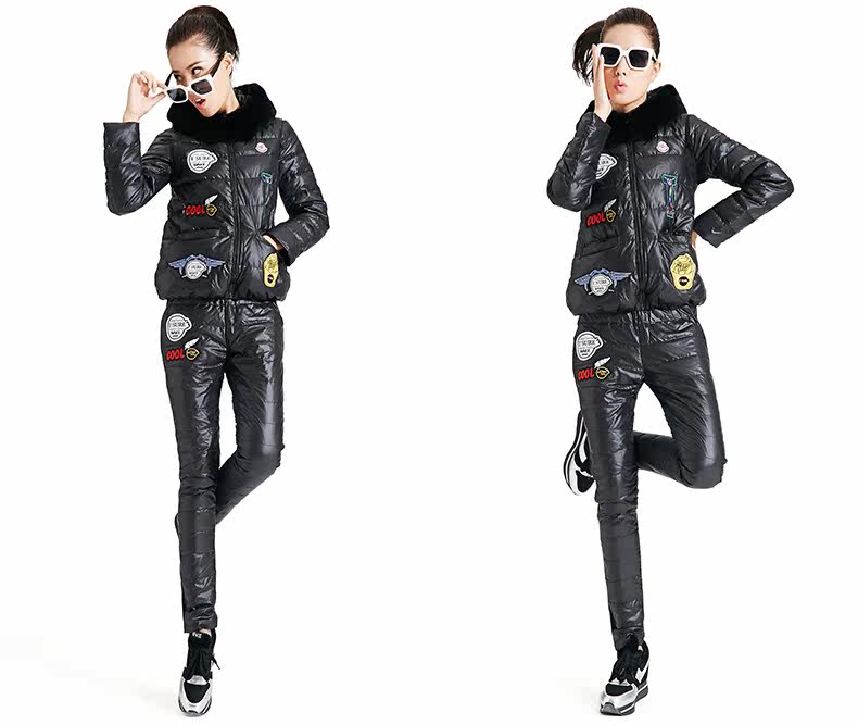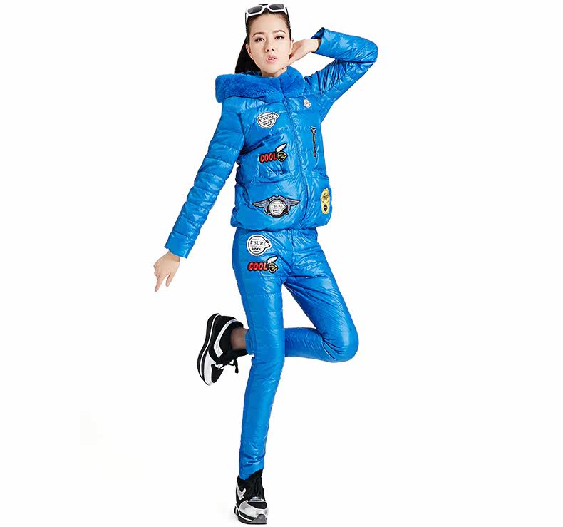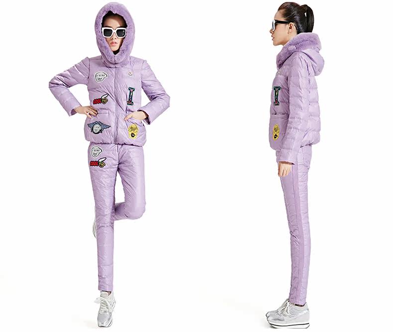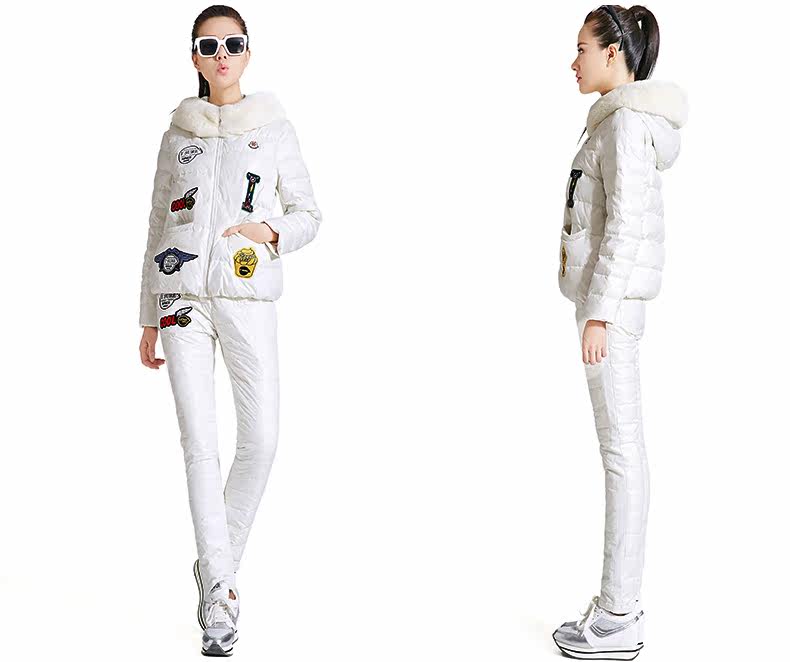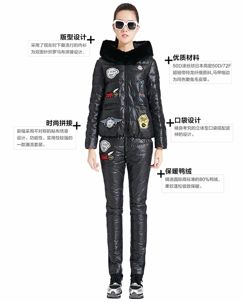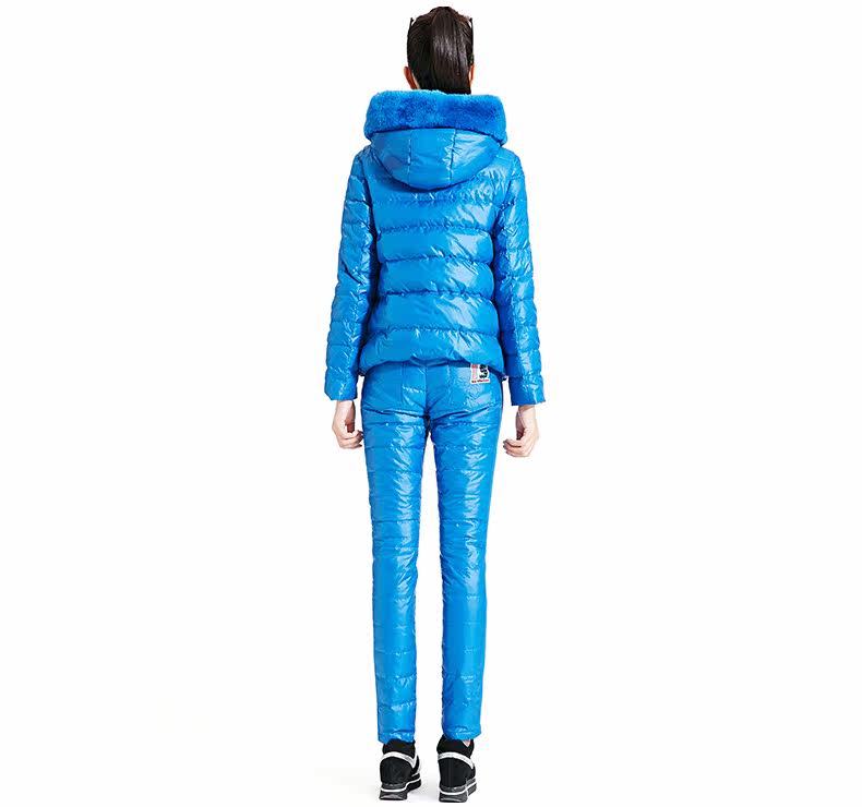 艾尚雪专柜同步新款獭兔毛修身短款两件套羽绒服套装16210
