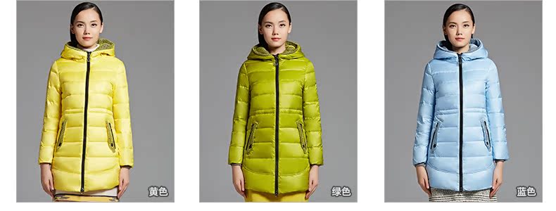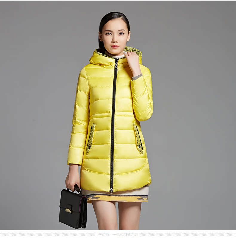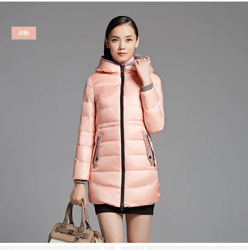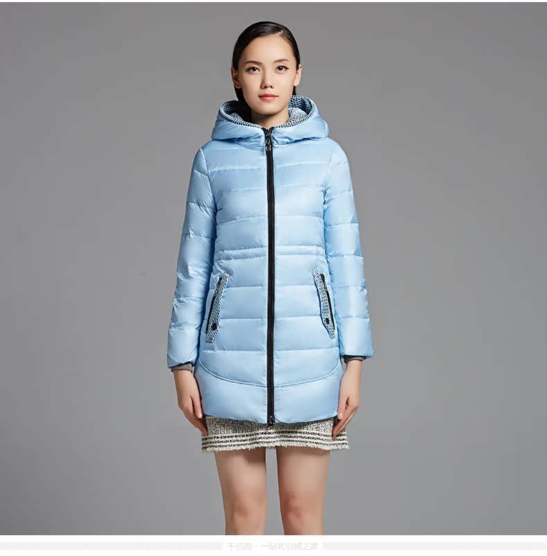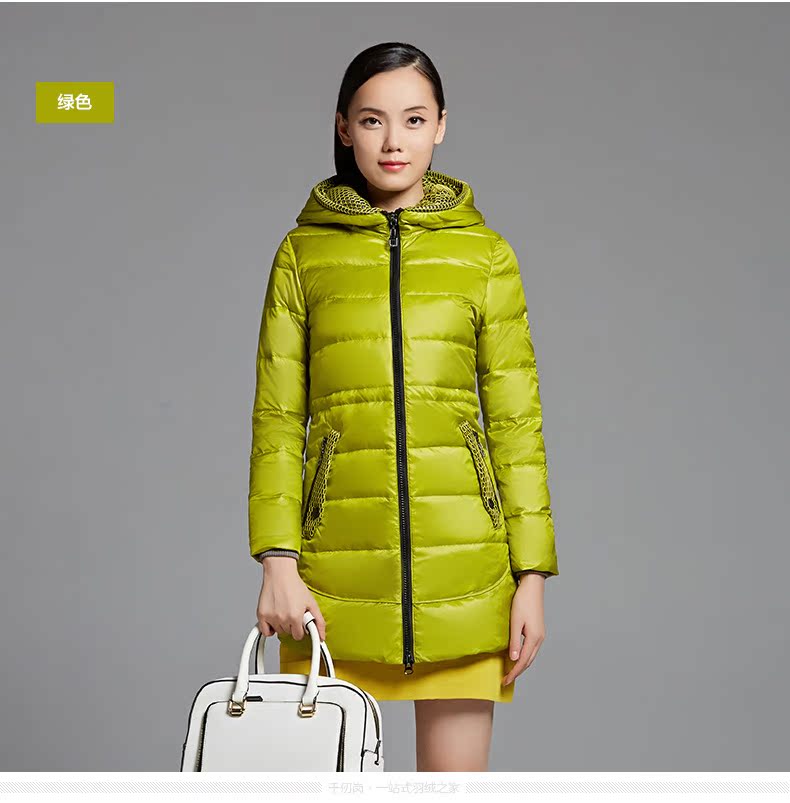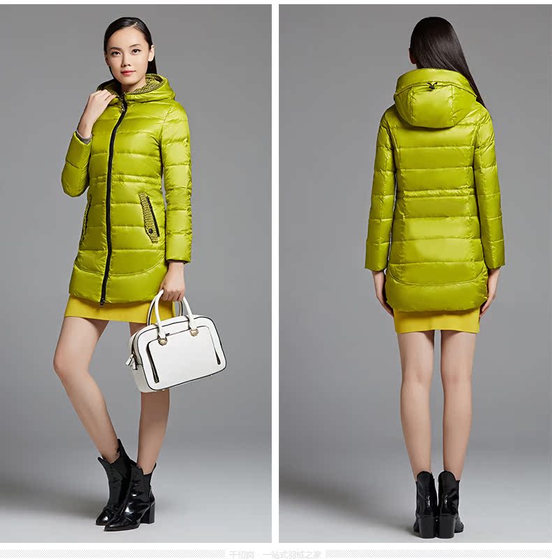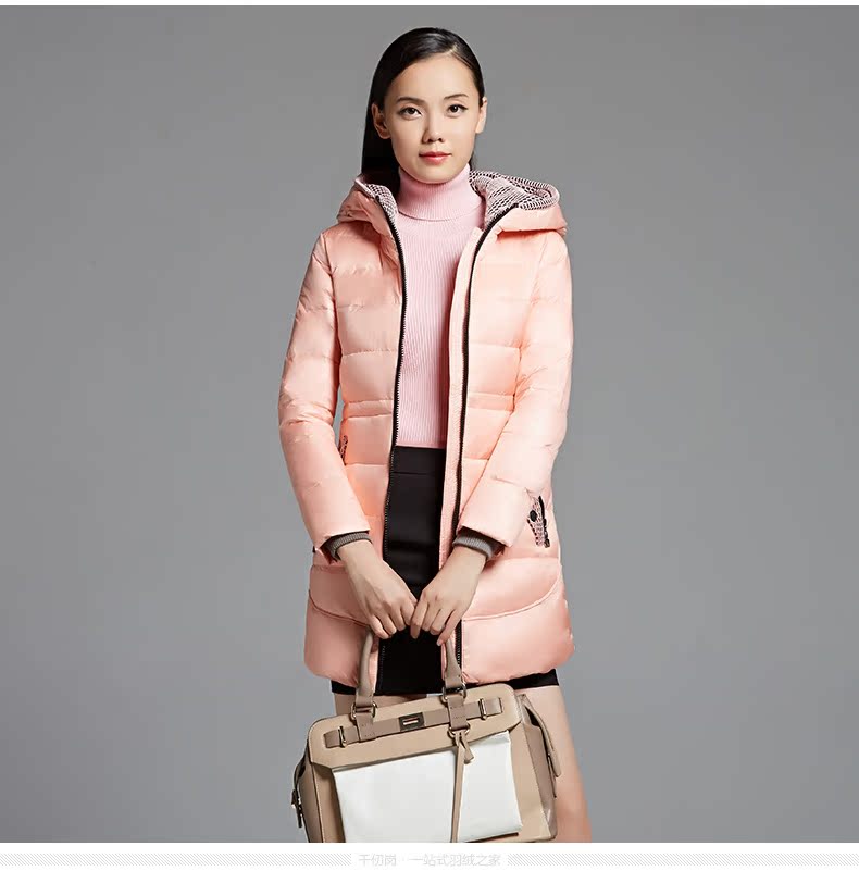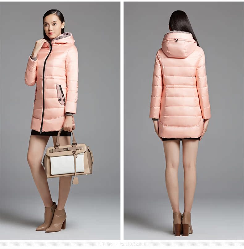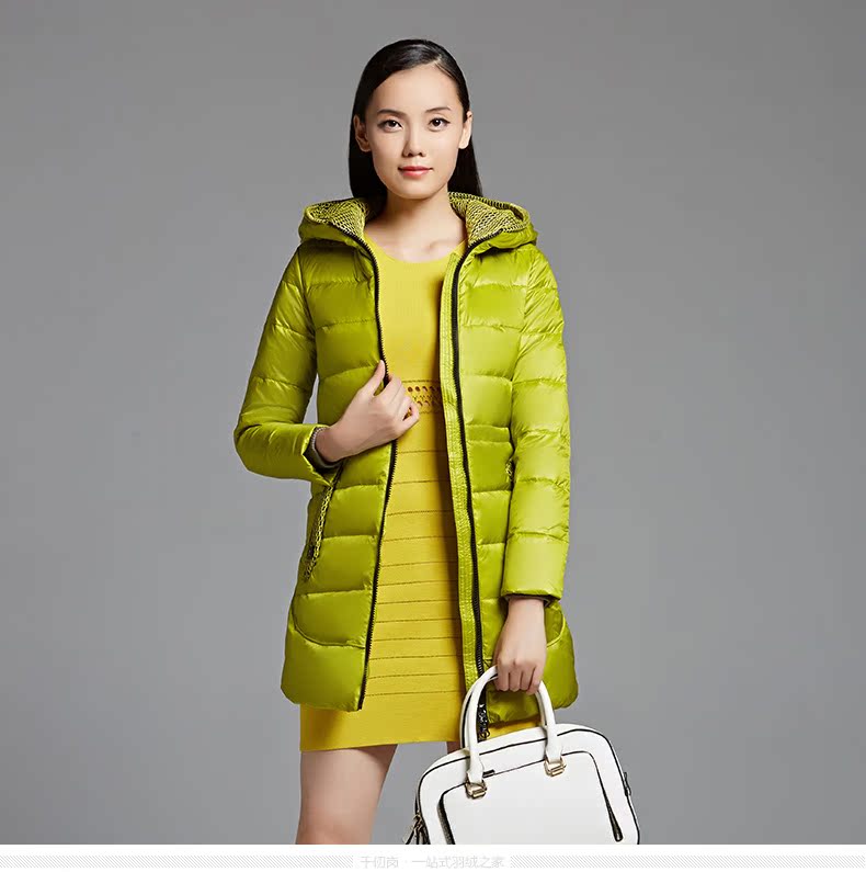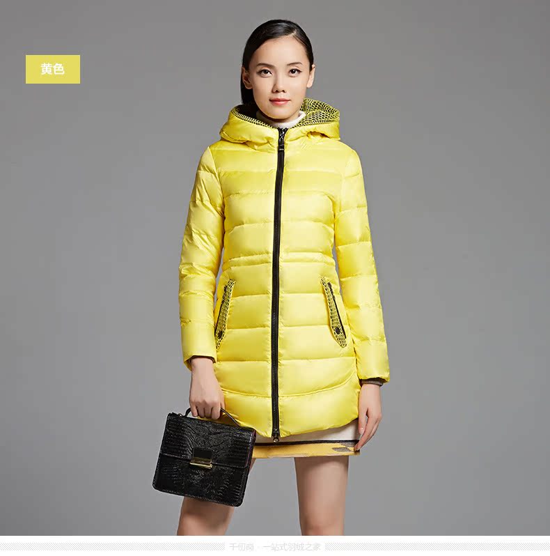 千仞岗2015秋冬女装羽绒服 中长款连帽糖果色羽绒服19108