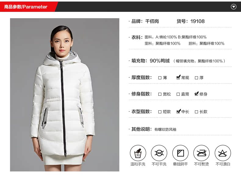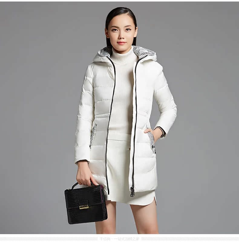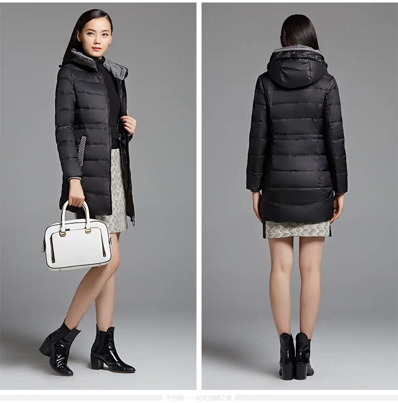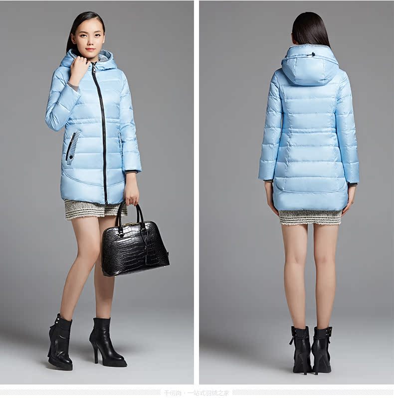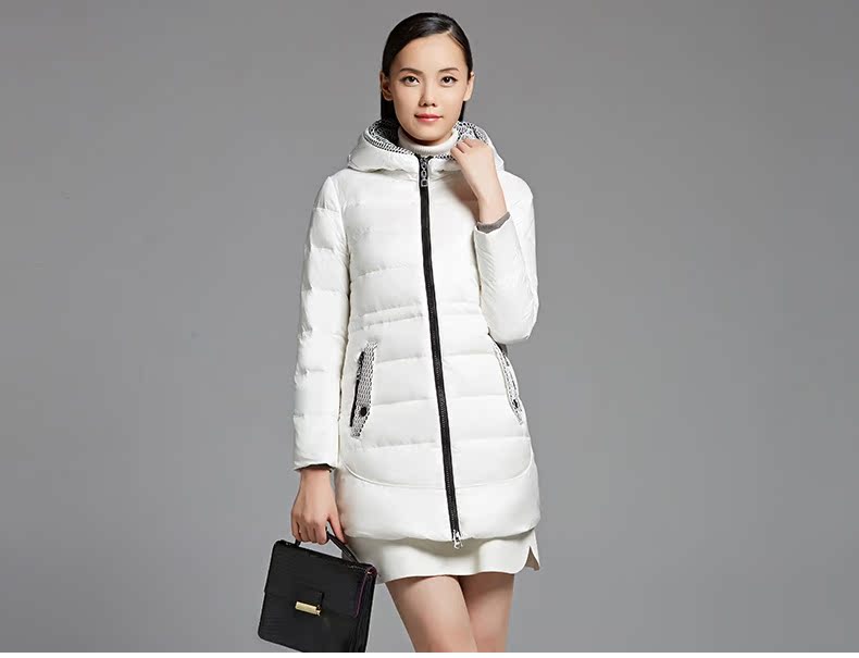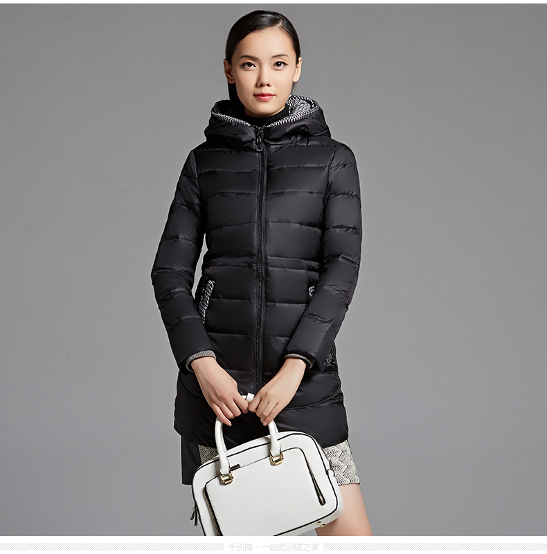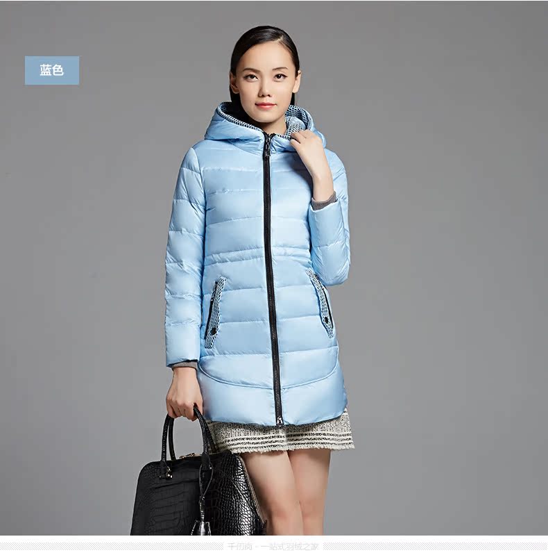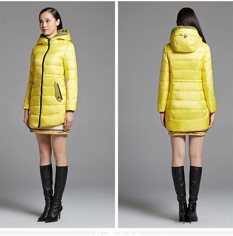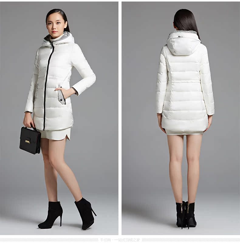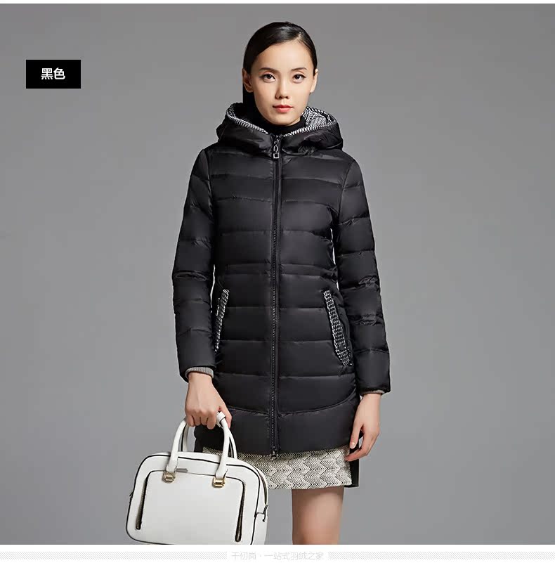 千仞岗2015秋冬女装羽绒服 中长款连帽糖果色羽绒服19108