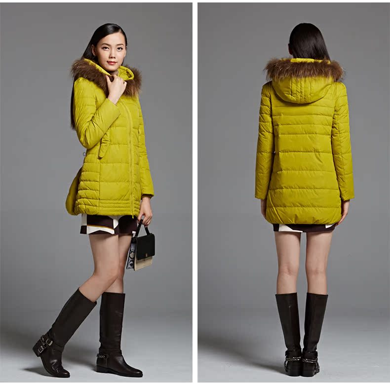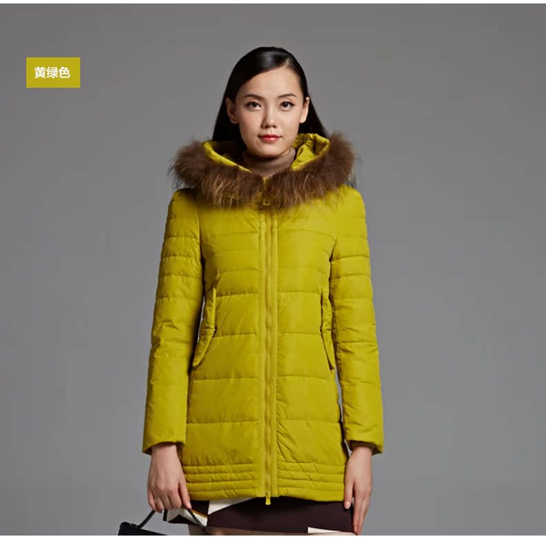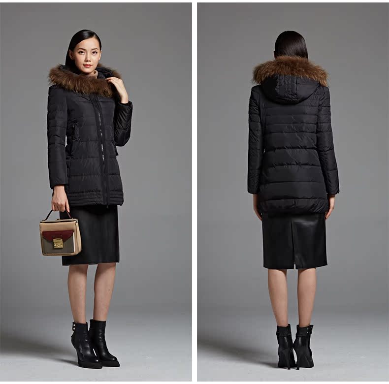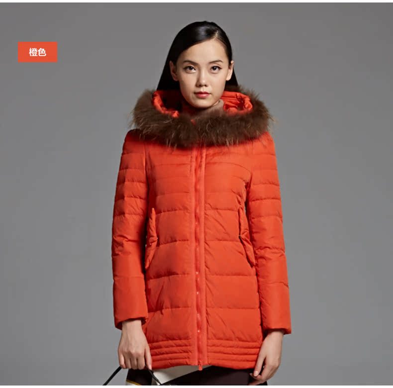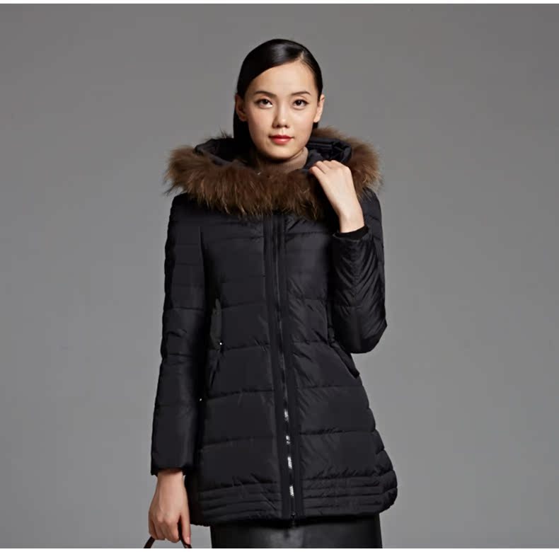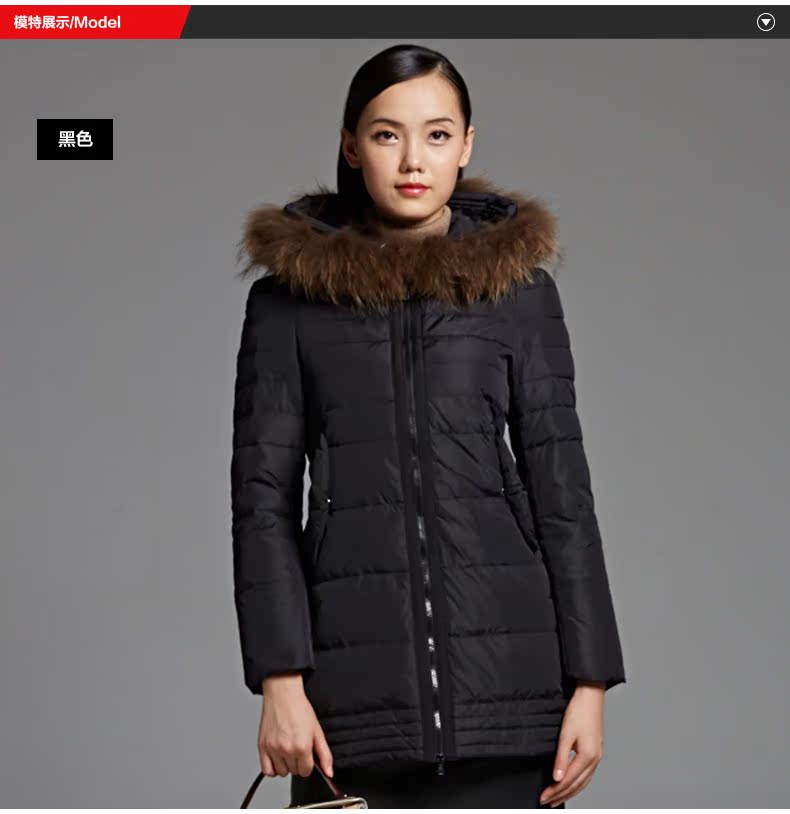 千仞岗2015秋冬女装羽绒服 中长款大毛领修身女装外套羽绒服19333
