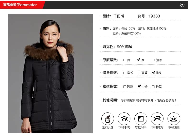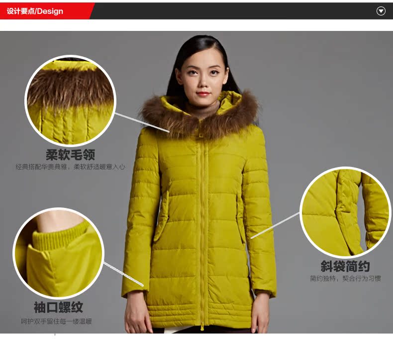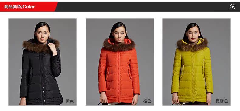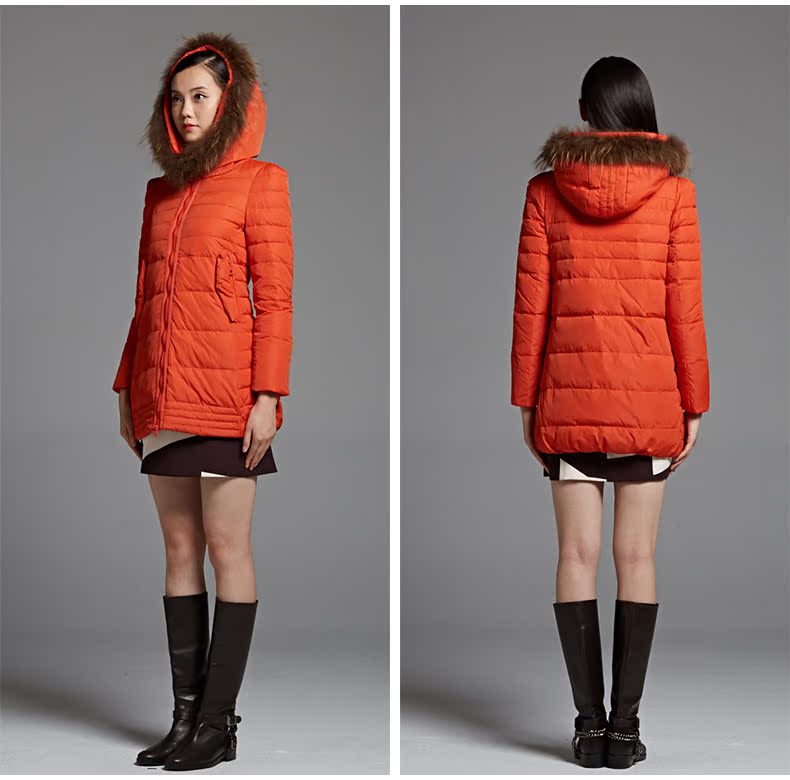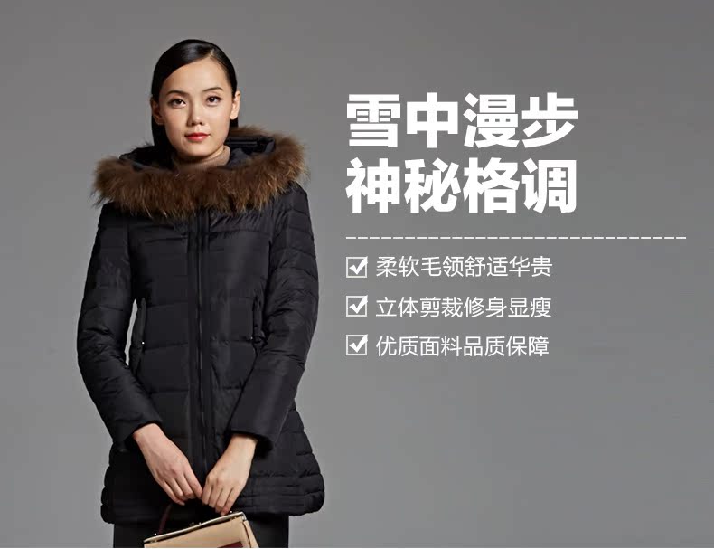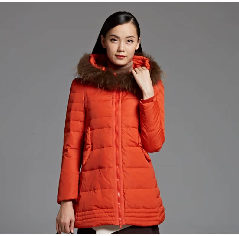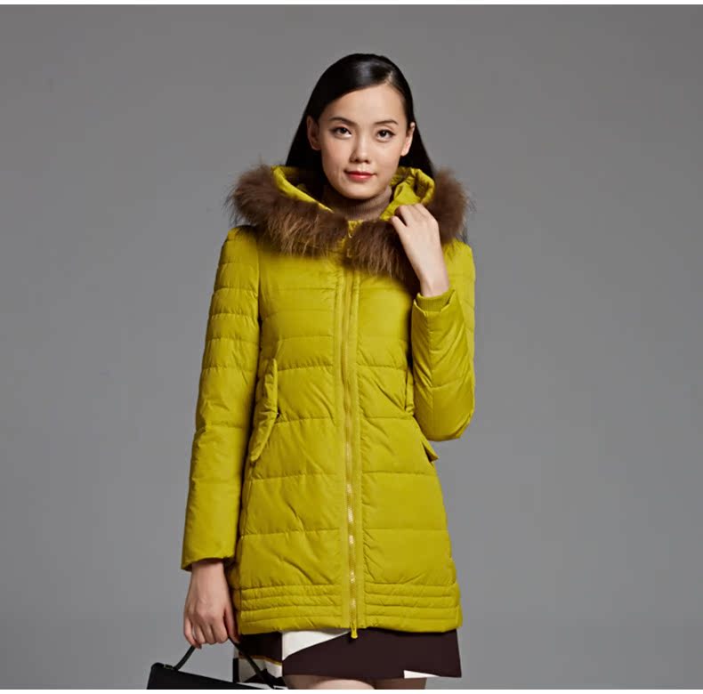 千仞岗2015秋冬女装羽绒服 中长款大毛领修身女装外套羽绒服19333
