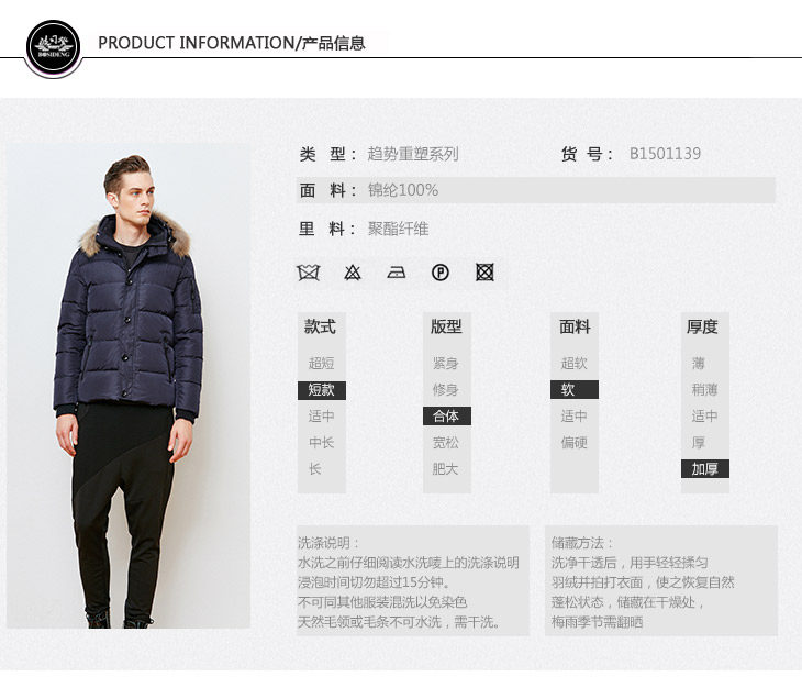 波司登2015秋冬新款男士带帽正品北方加厚羽绒服B1501139