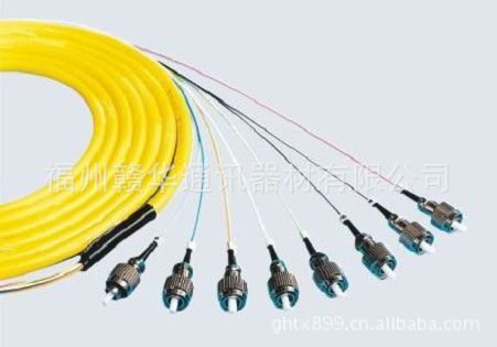12芯束状尾纤:原装单模康宁光纤和进口陶瓷插芯接头分支光缆外径0 .9mm。
