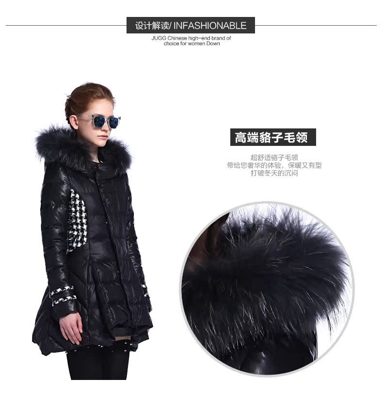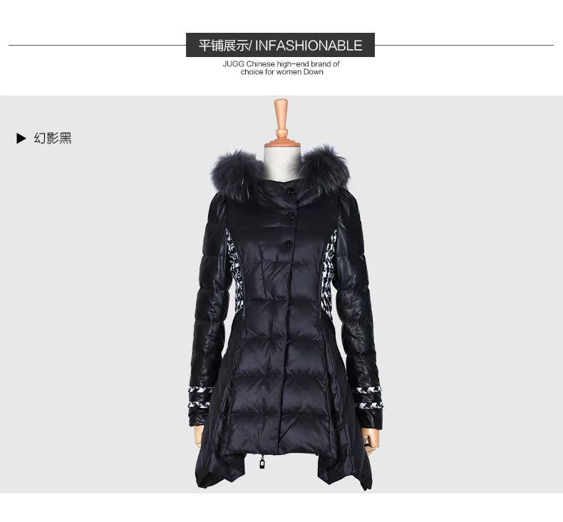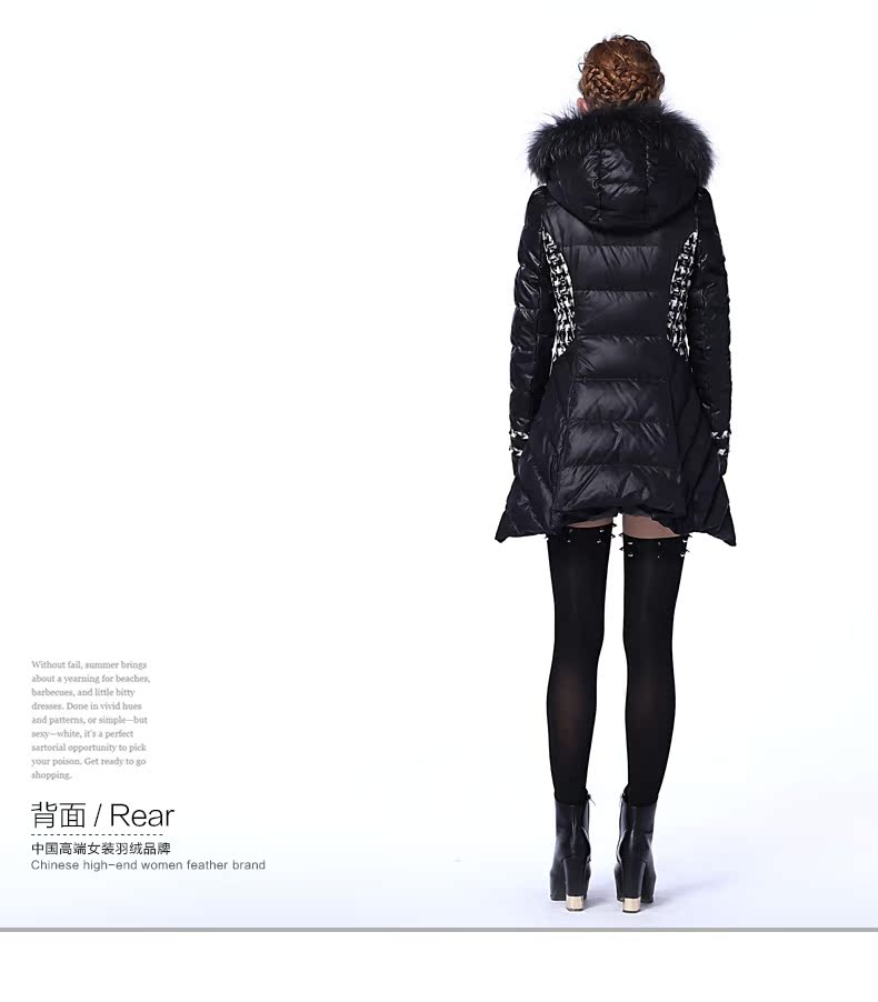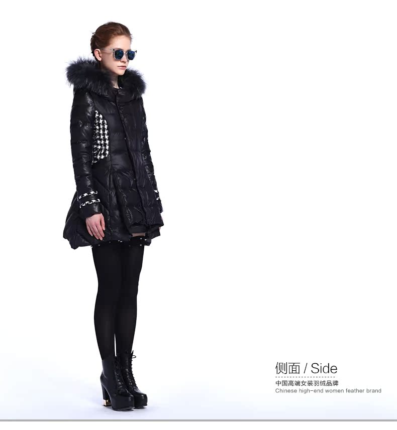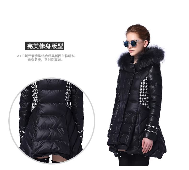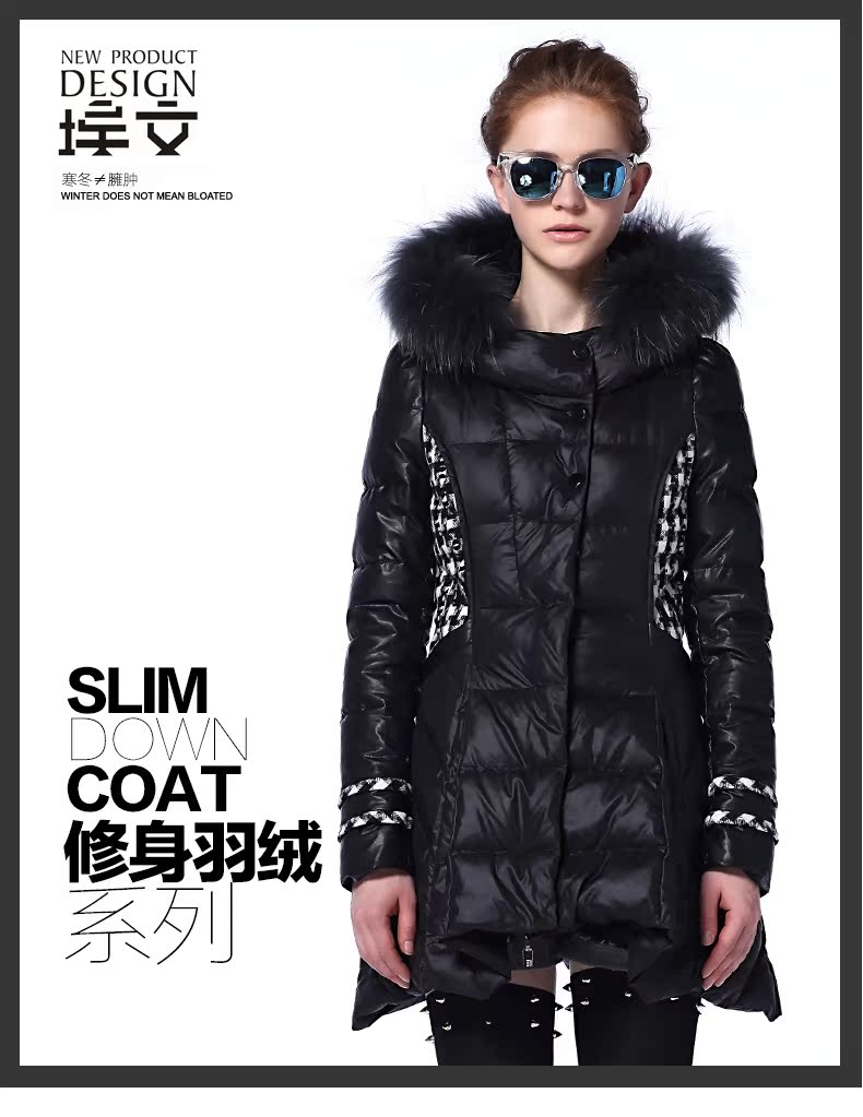 埃文中长款修身黑色欧美羽绒服欧洲站连帽羽绒服女士A5362