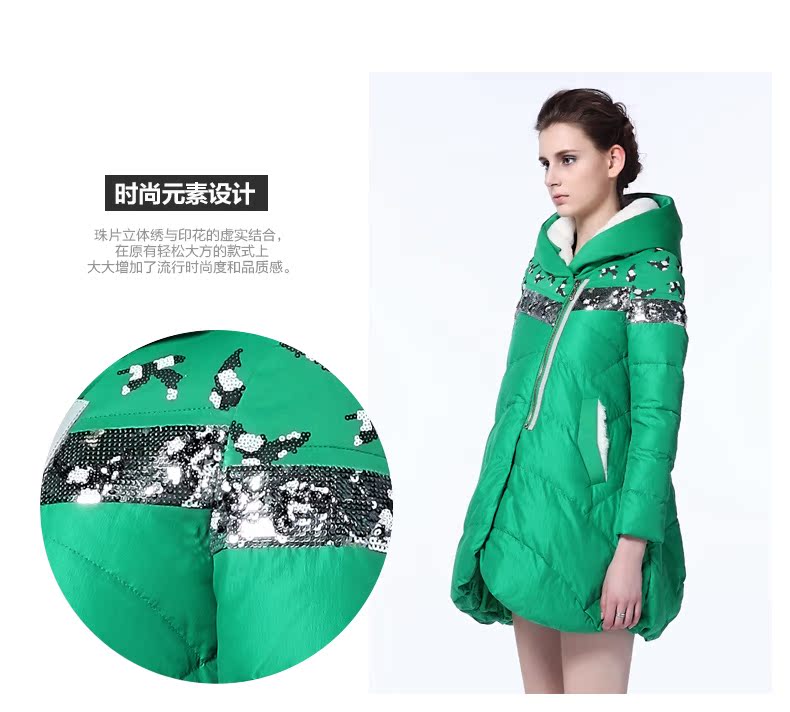 埃文2015专柜同款新款连帽中长款羽绒服女欧美长袖修身羽绒衣A522