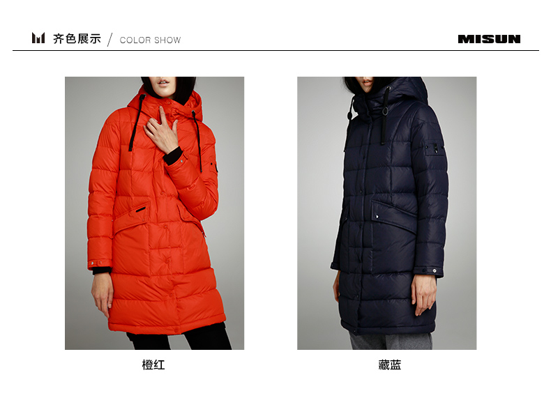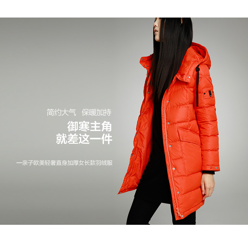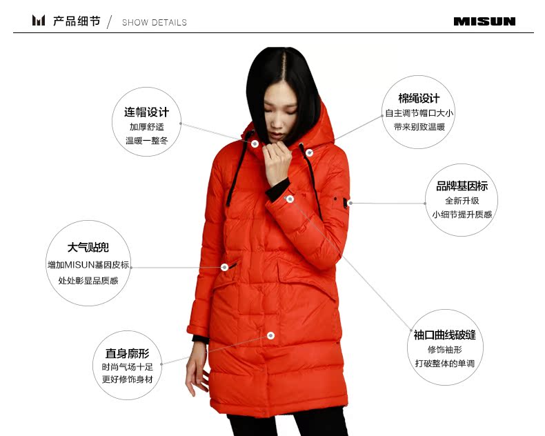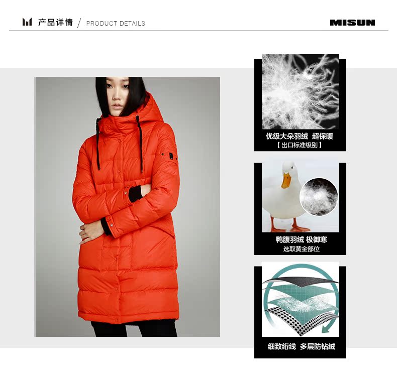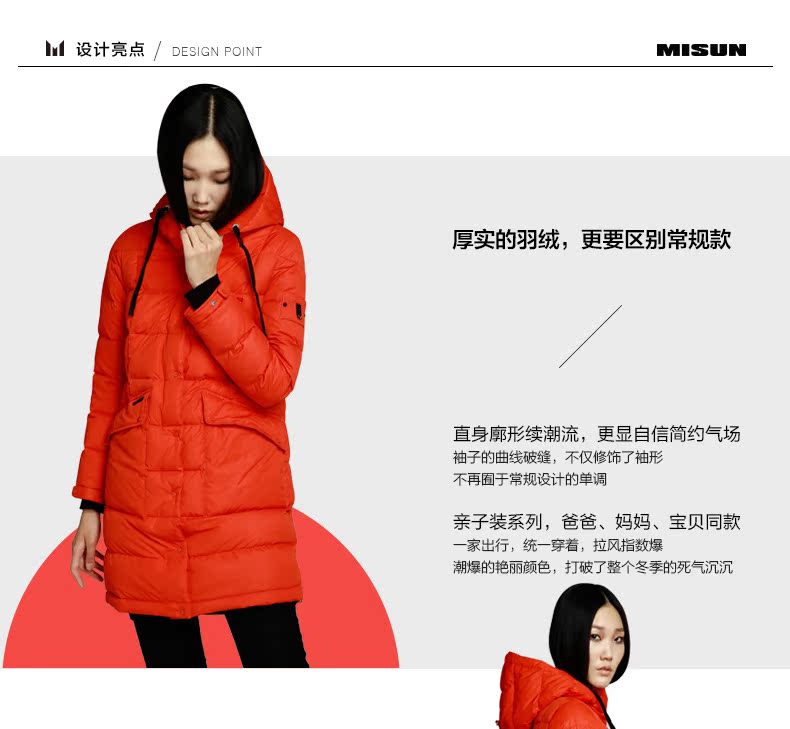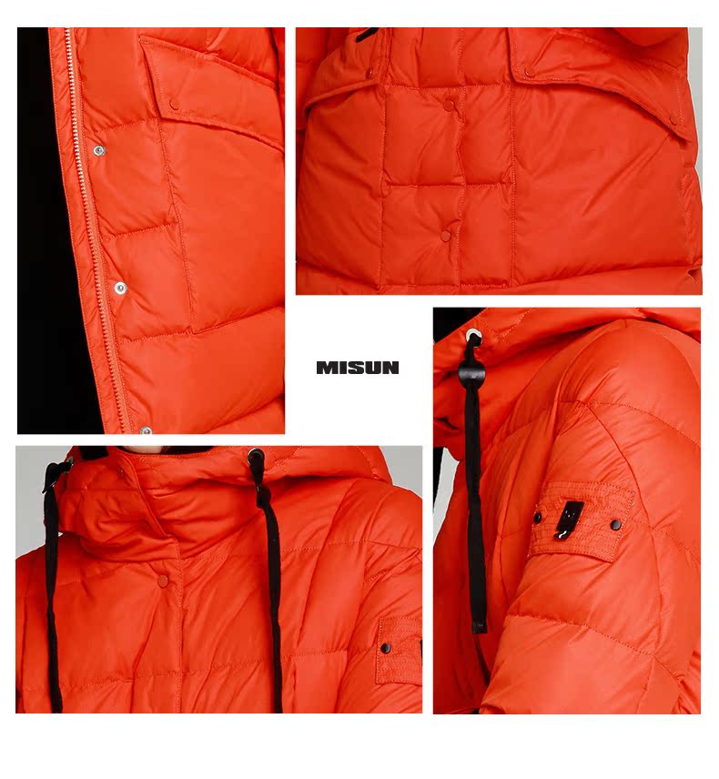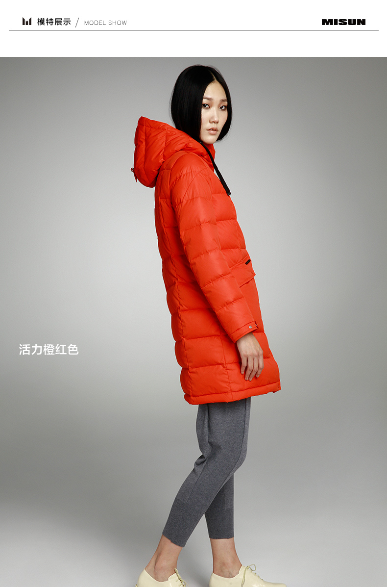 米尚2015秋冬新款欧洲站修身廓型高品质中长款女士羽绒服