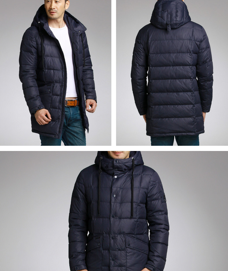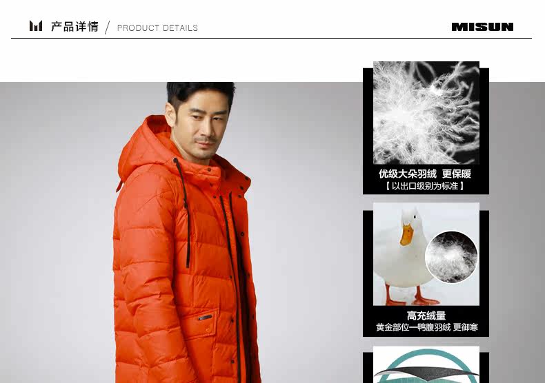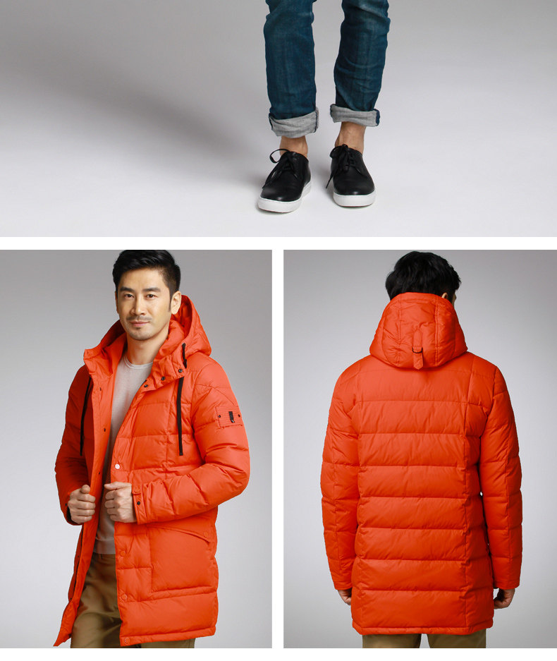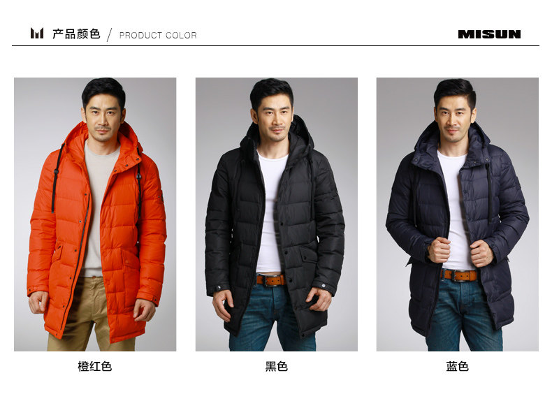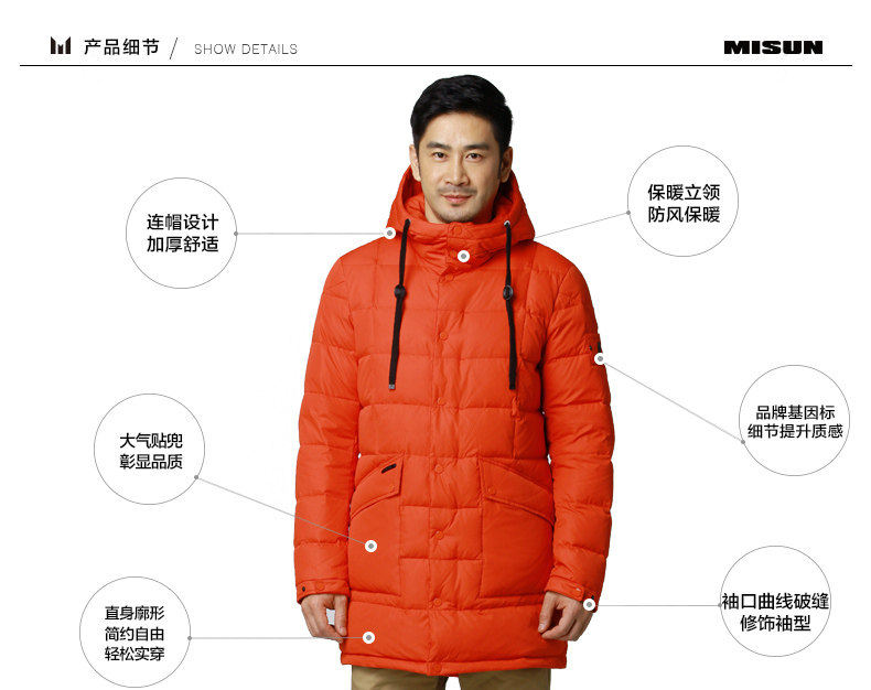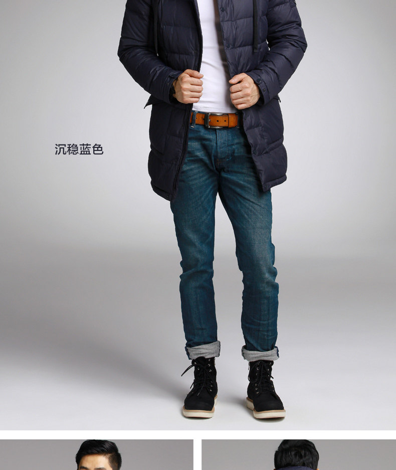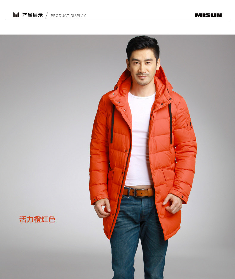 米尚2015秋冬新款直身简约廓型中长款连帽加厚男士羽绒服