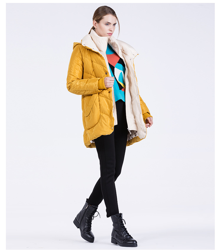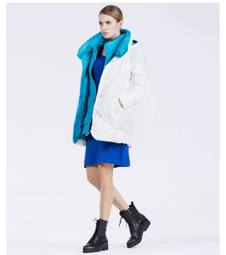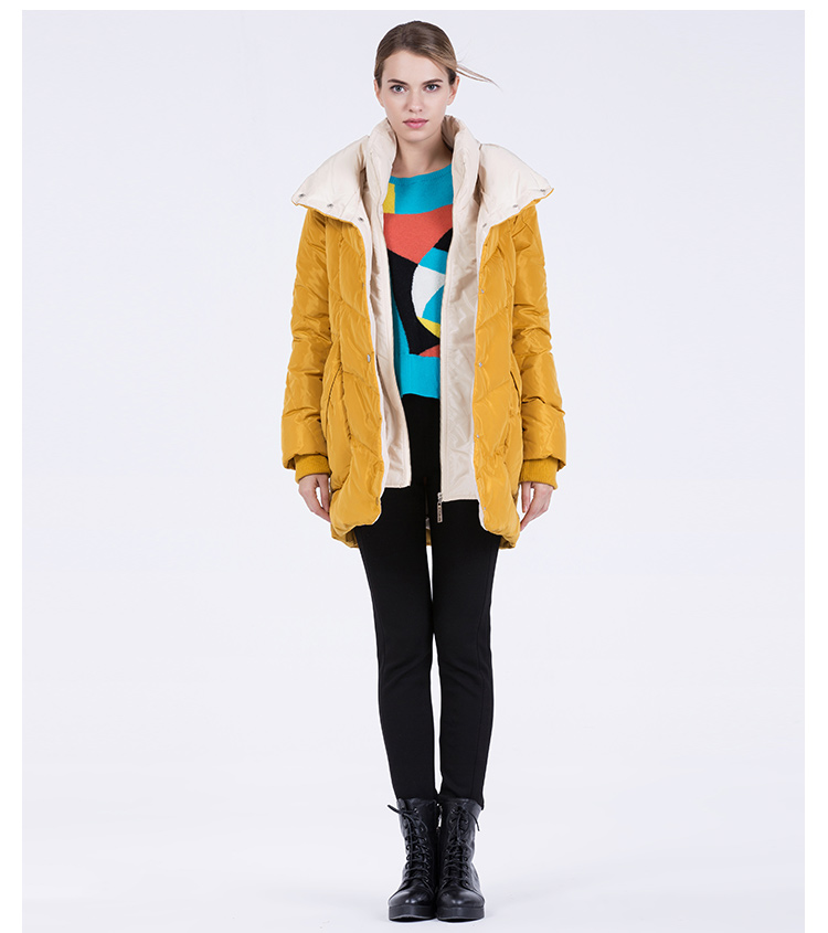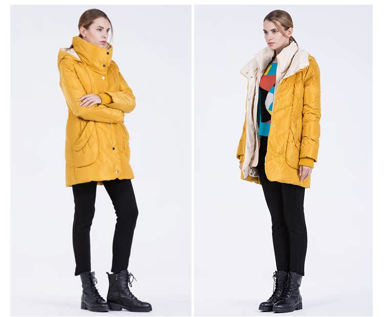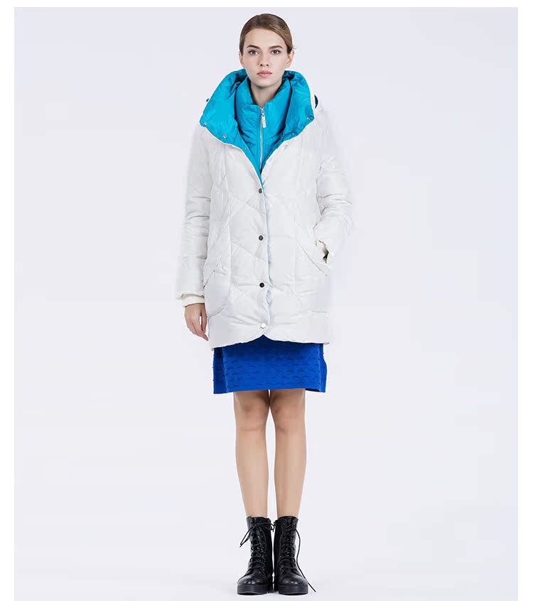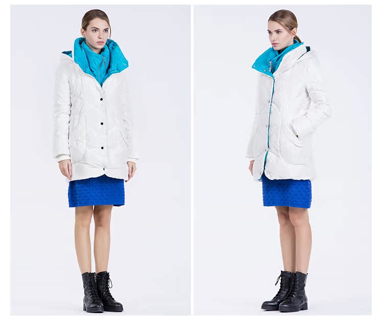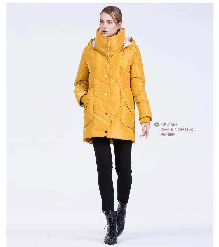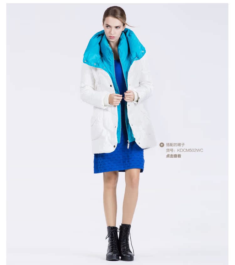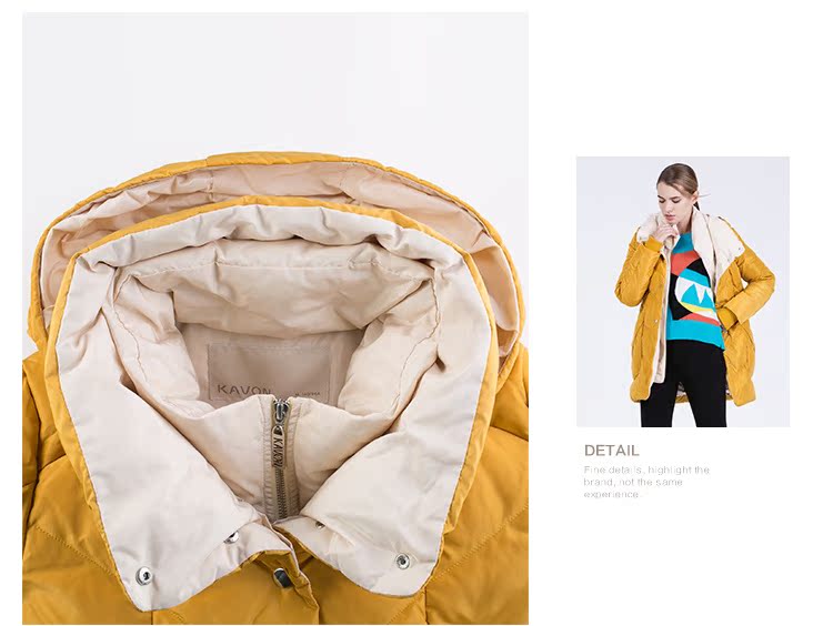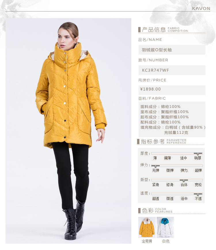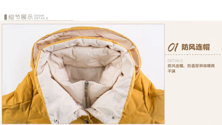 卡汶 2015冬高档白鸭绒保暖防风中长款连帽O型长袖羽绒服女