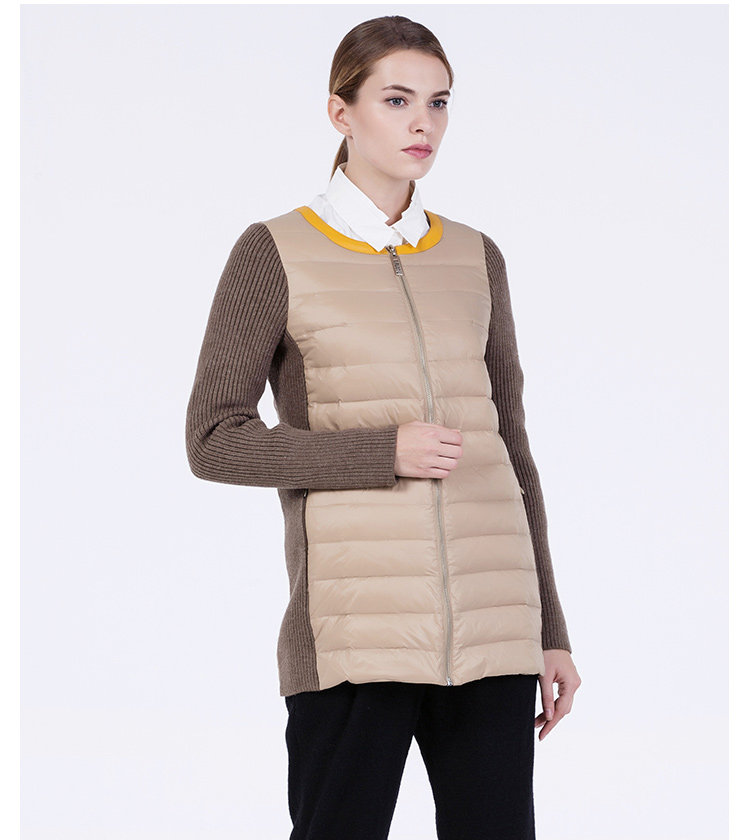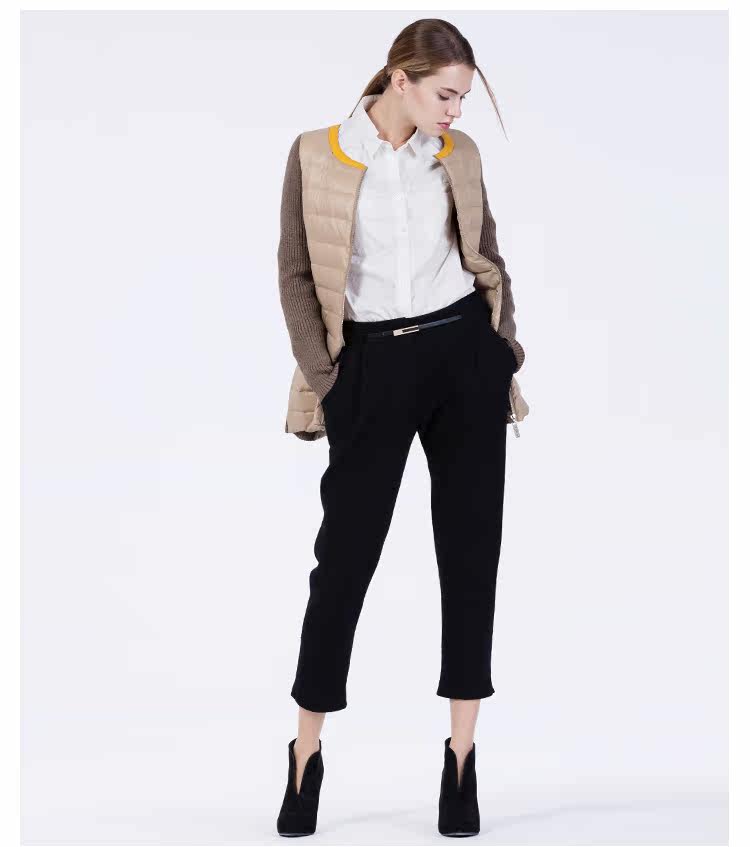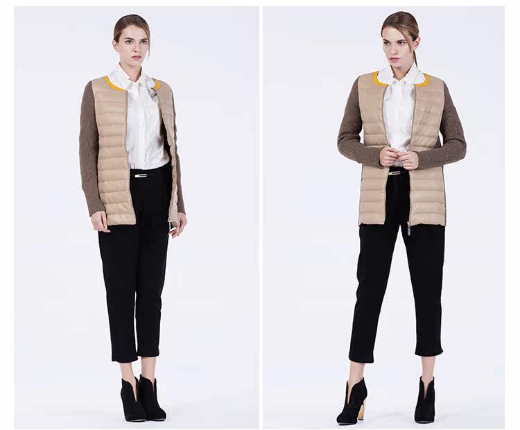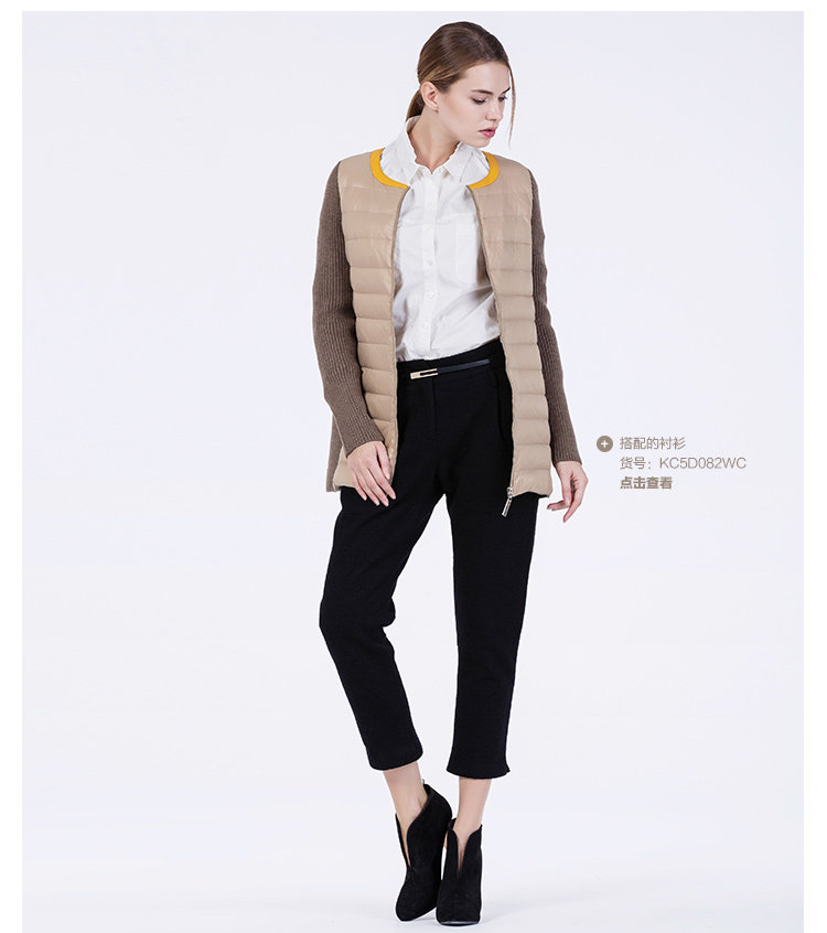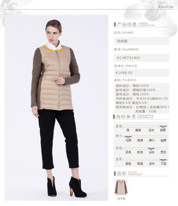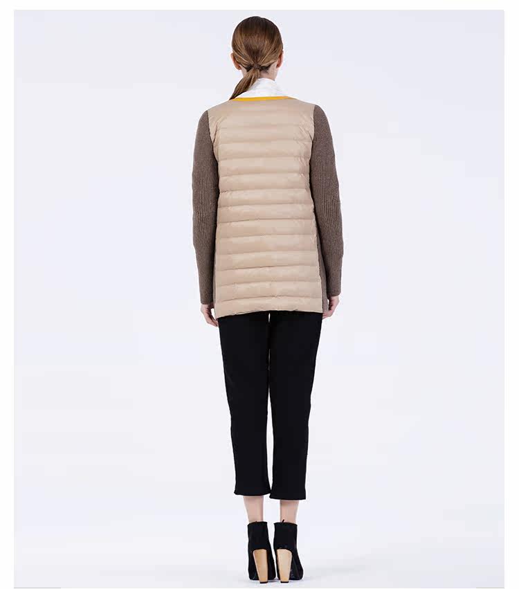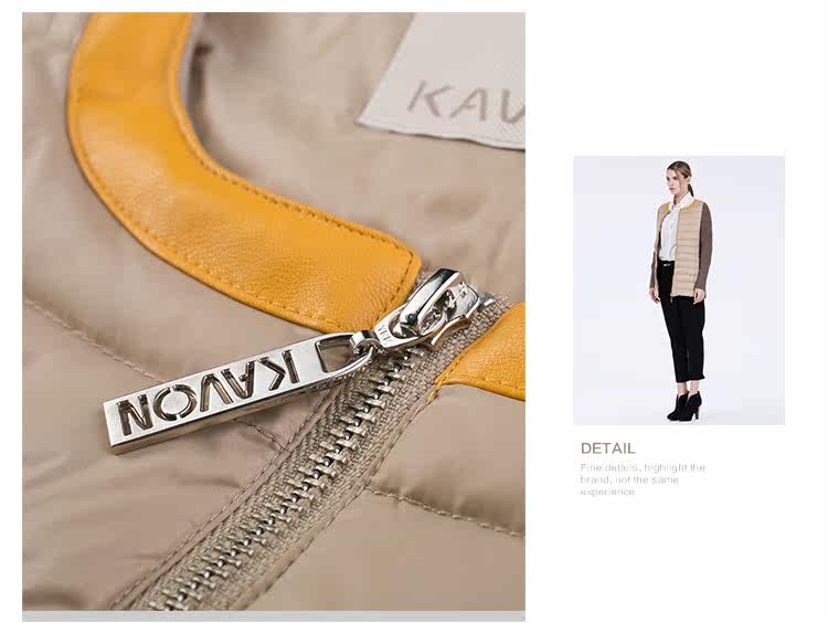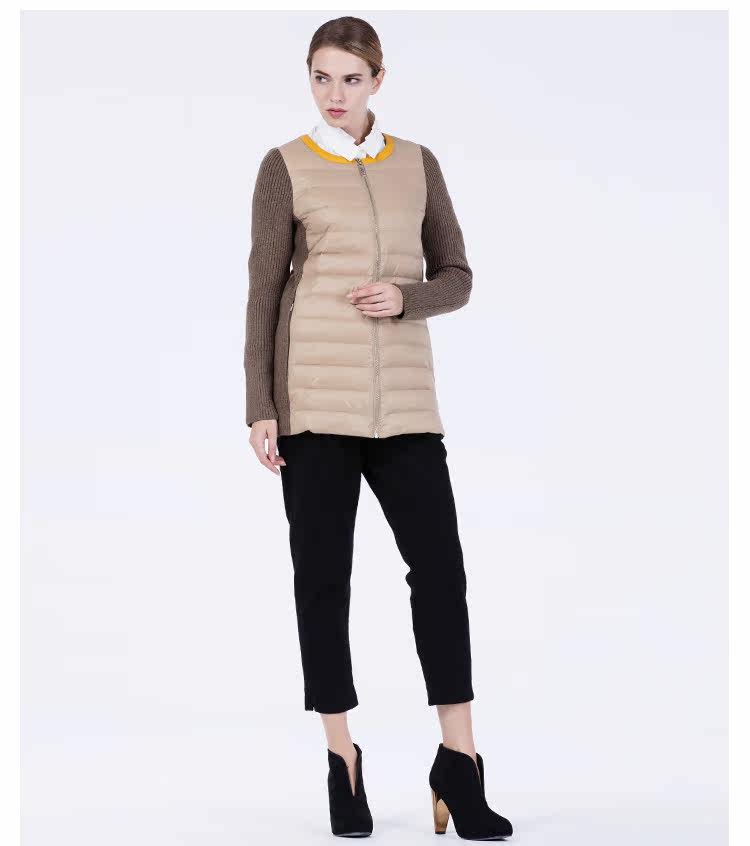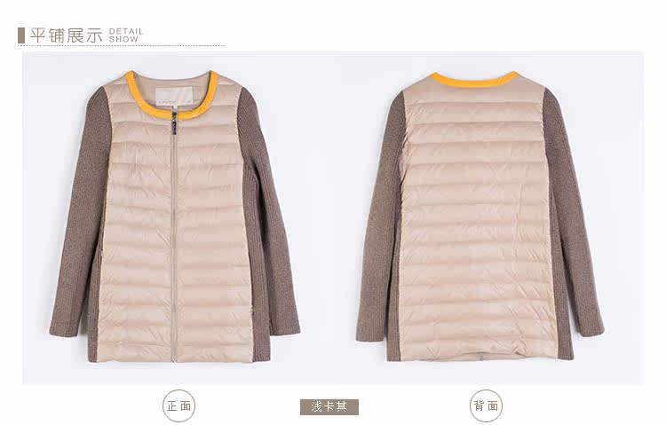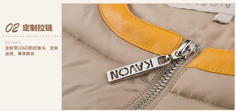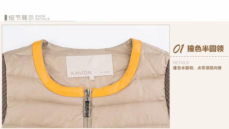 卡汶 冬季高档白鸭绒保暖撞色棉服拼接半圆领长袖羽绒服女