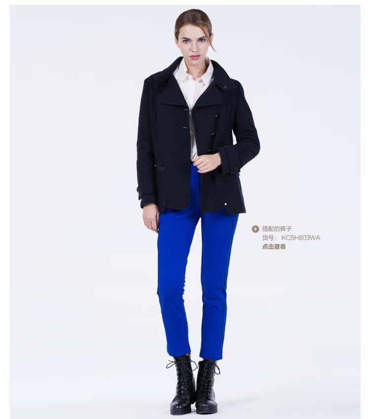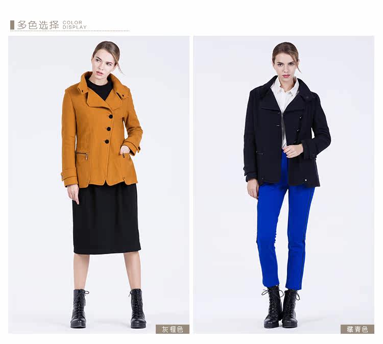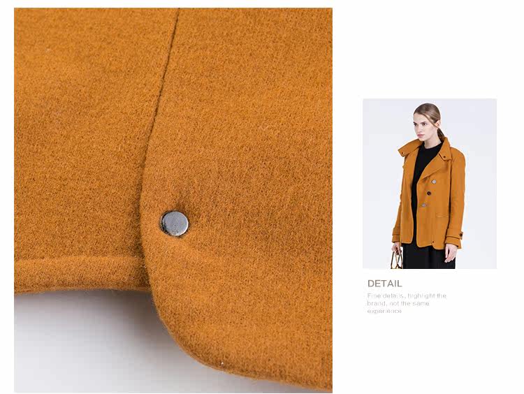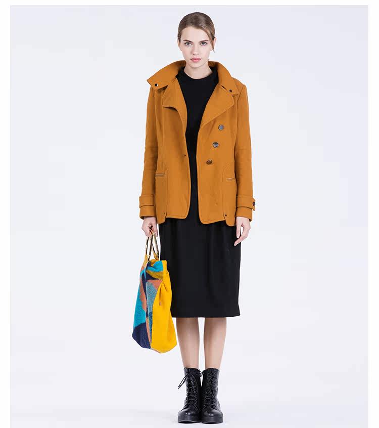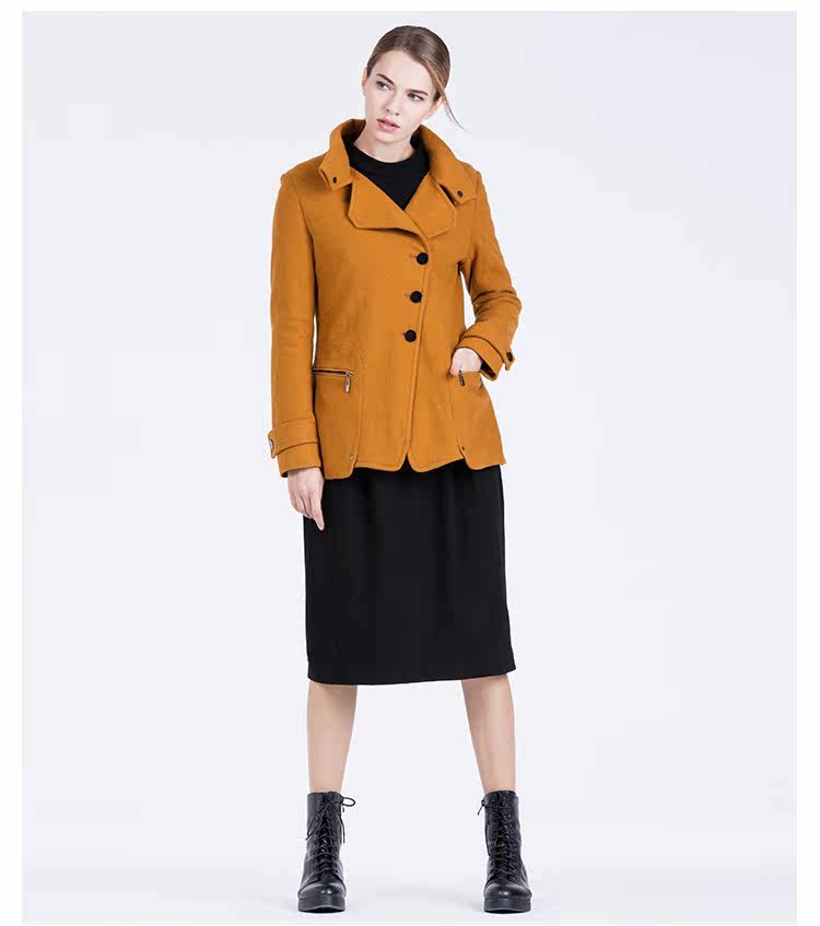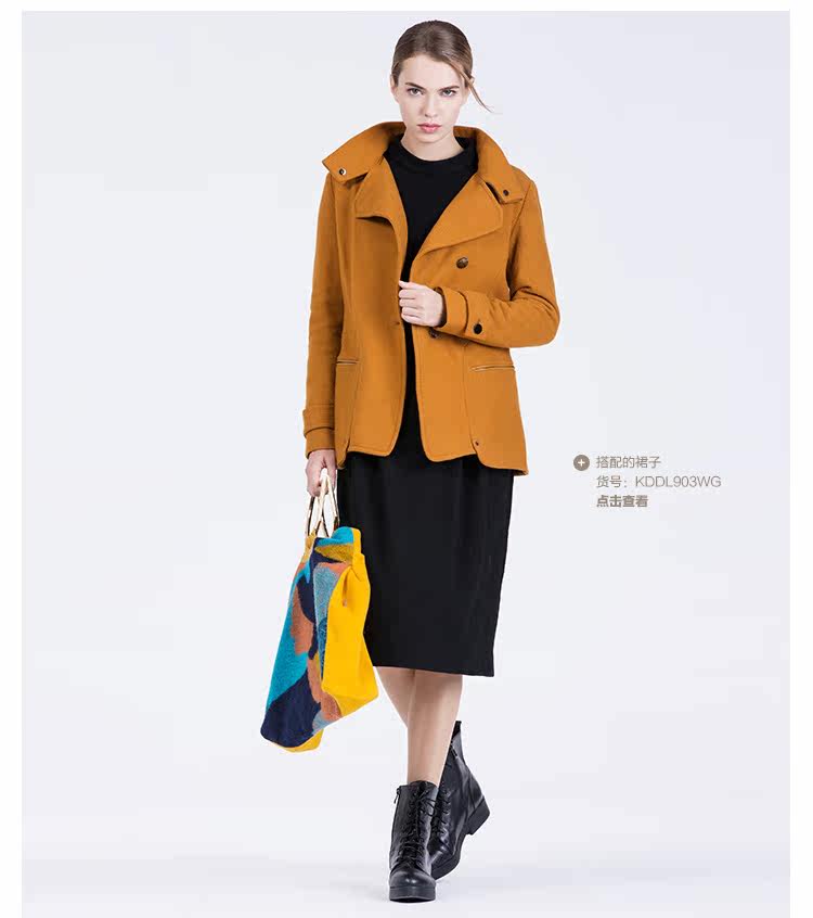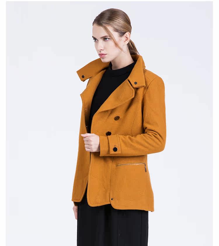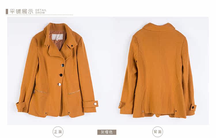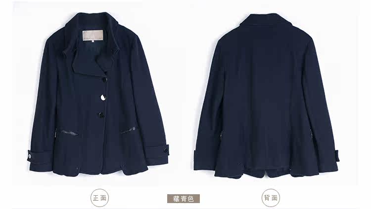 卡汶 2015秋冬高档羊毛翻领大衣纯色三粒扣长袖短款外套女