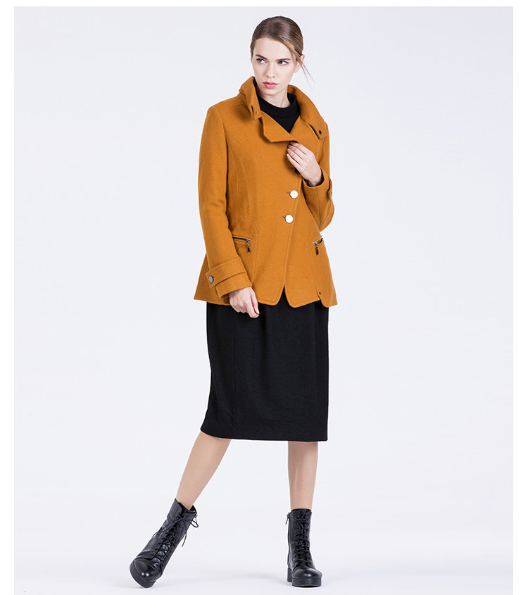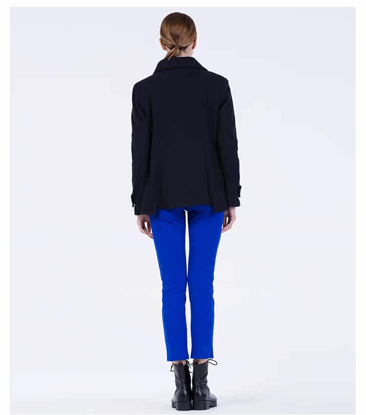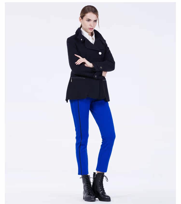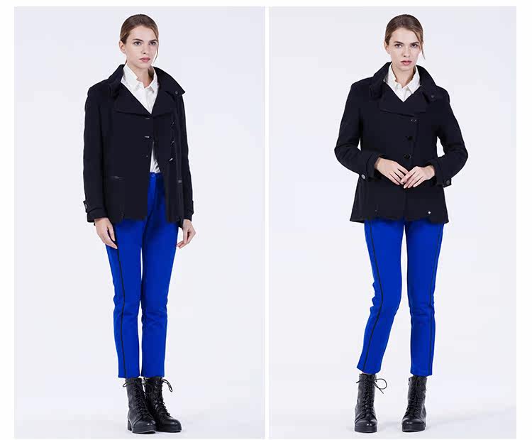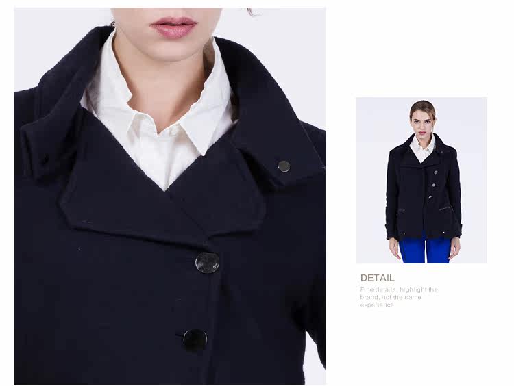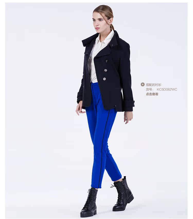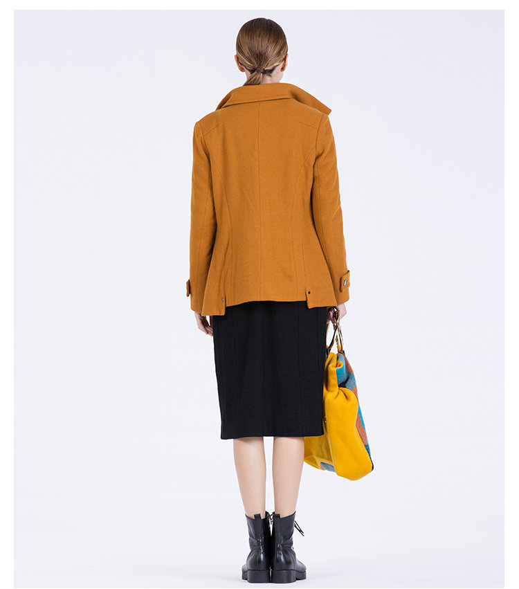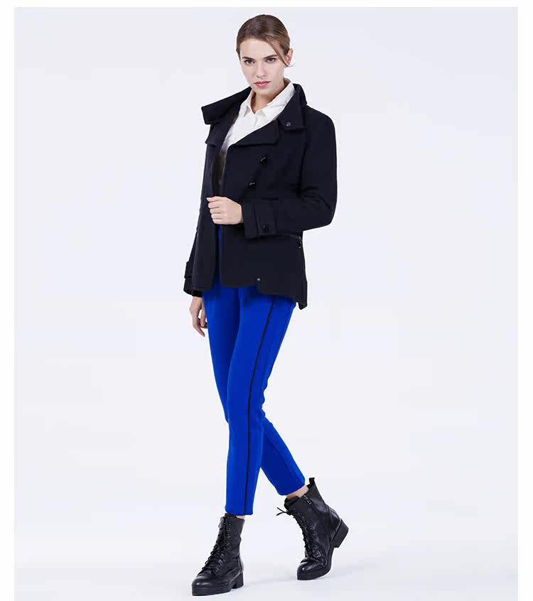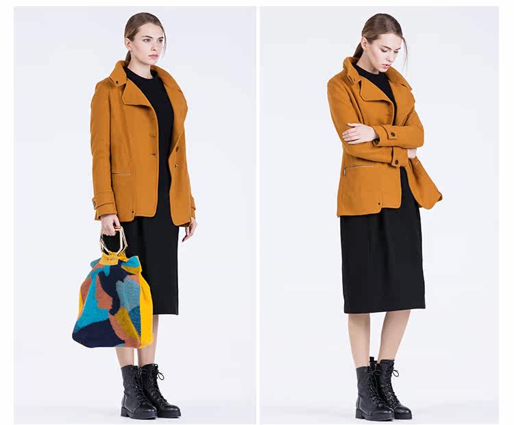 卡汶 2015秋冬高档羊毛翻领大衣纯色三粒扣长袖短款外套女