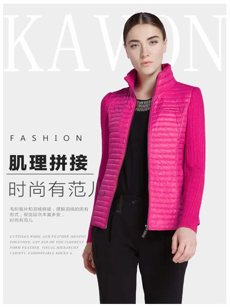 卡汶2015秋冬高档修身轻薄白鹅绒立领外套纯色长袖羽绒服女