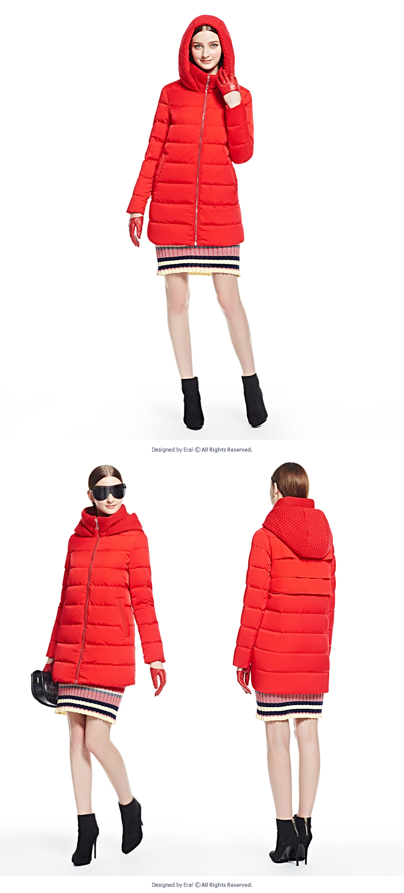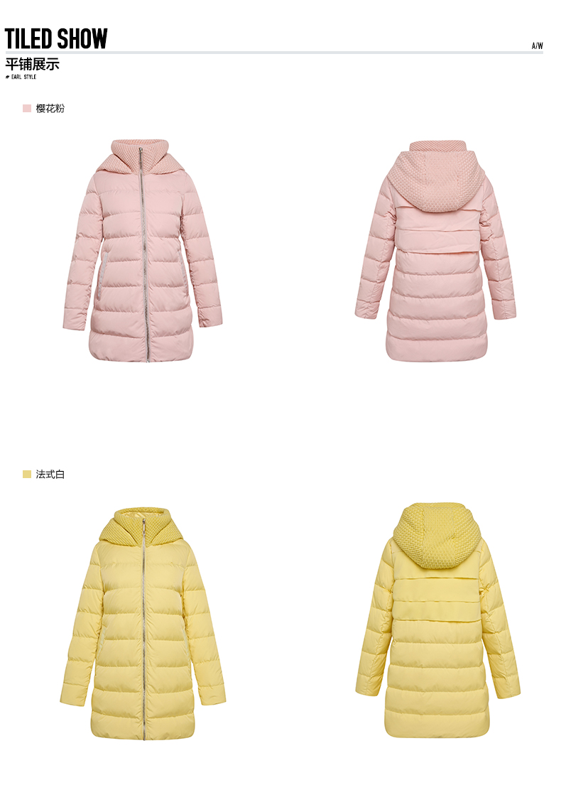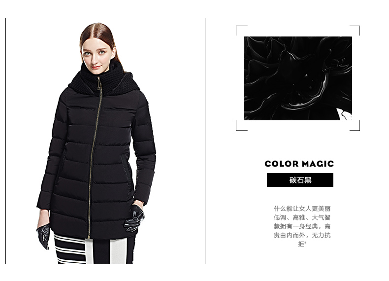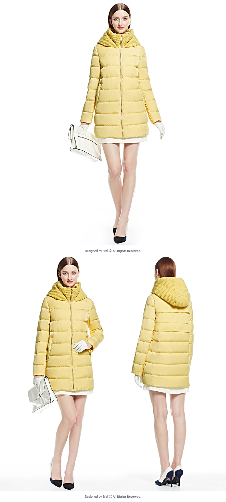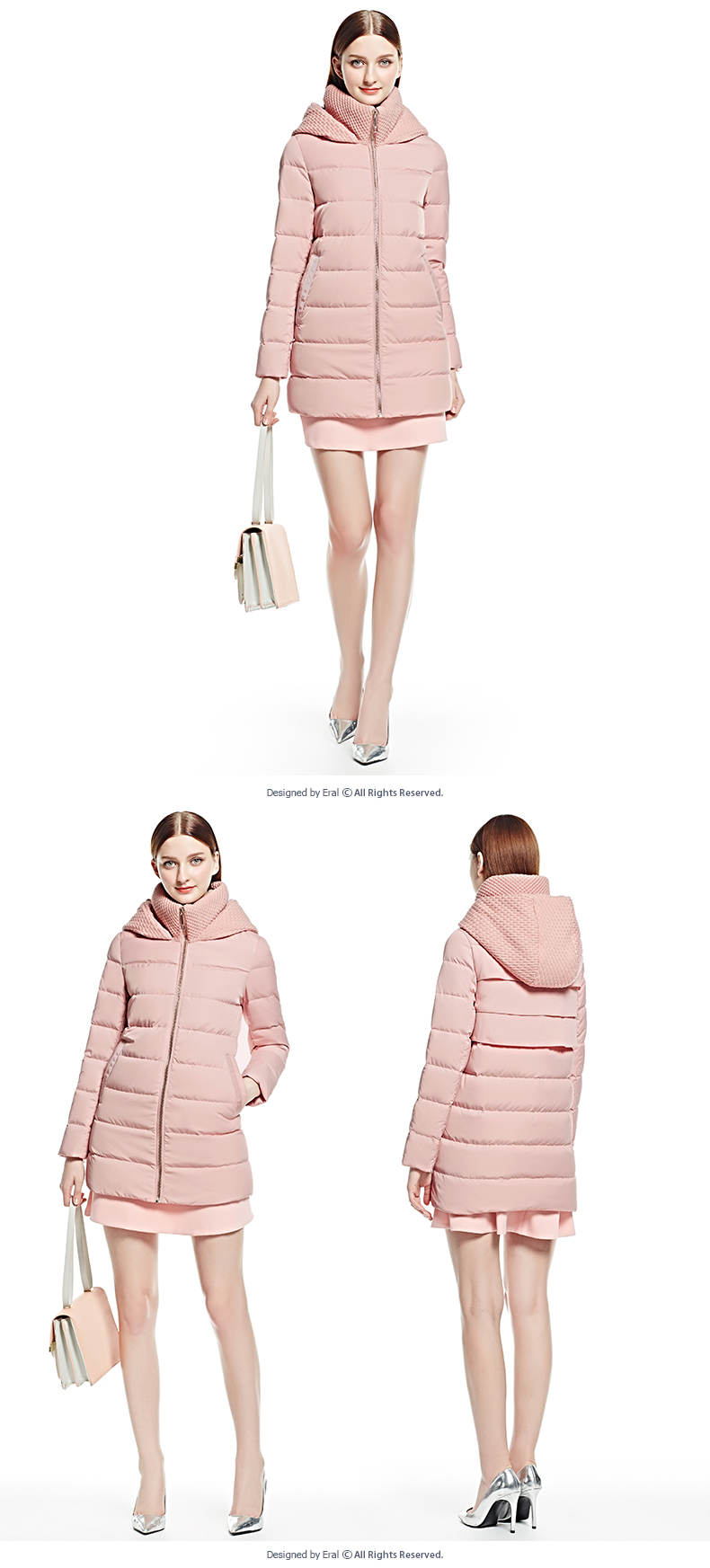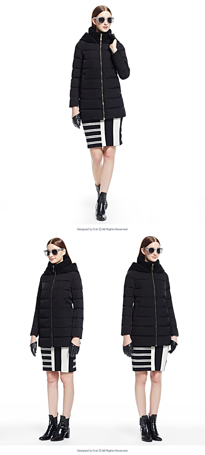 艾莱依2015冬新款针织拼接女中长款连帽修身纯色羽绒服ERAL6006D