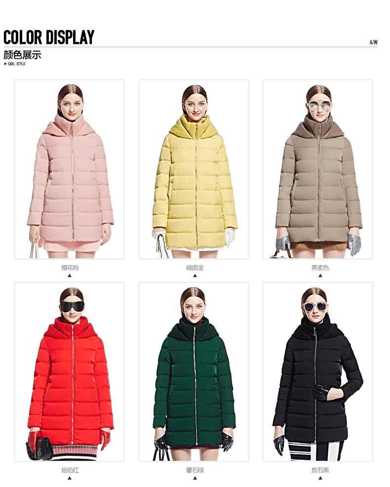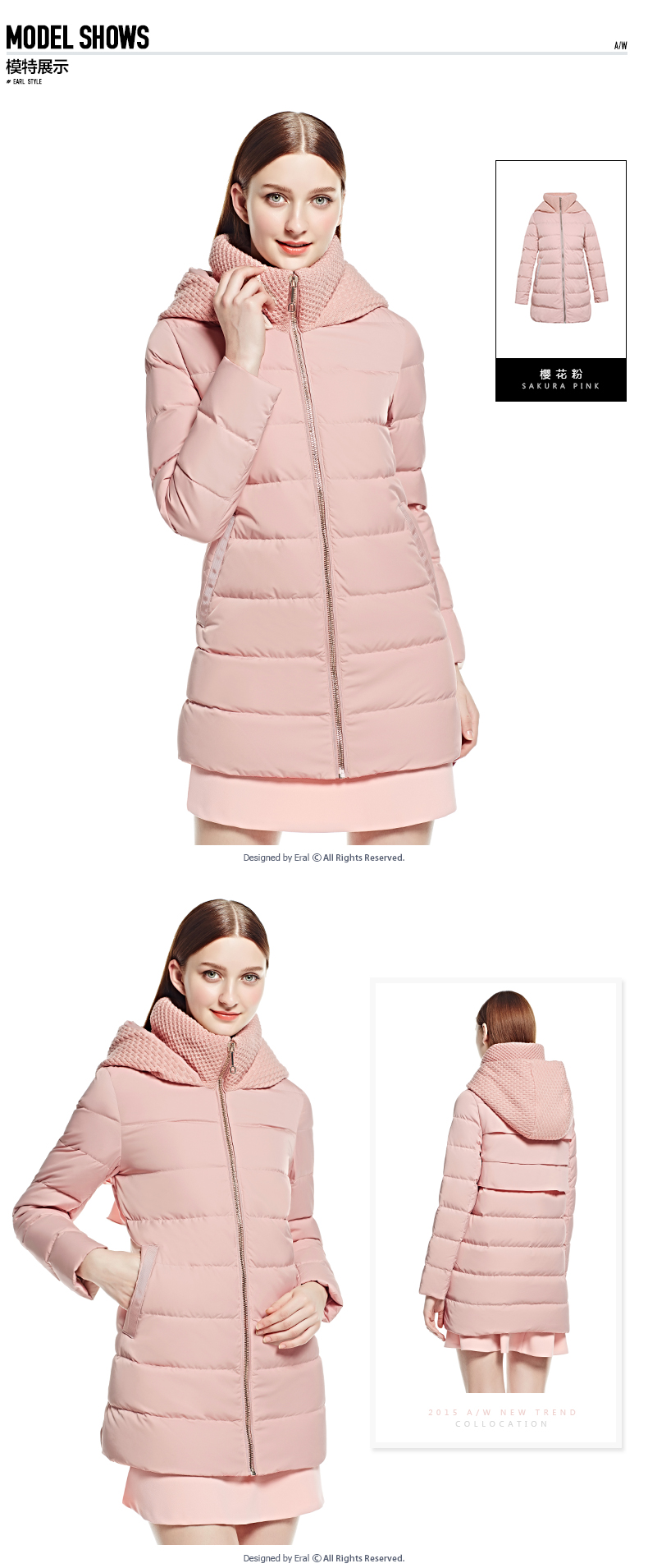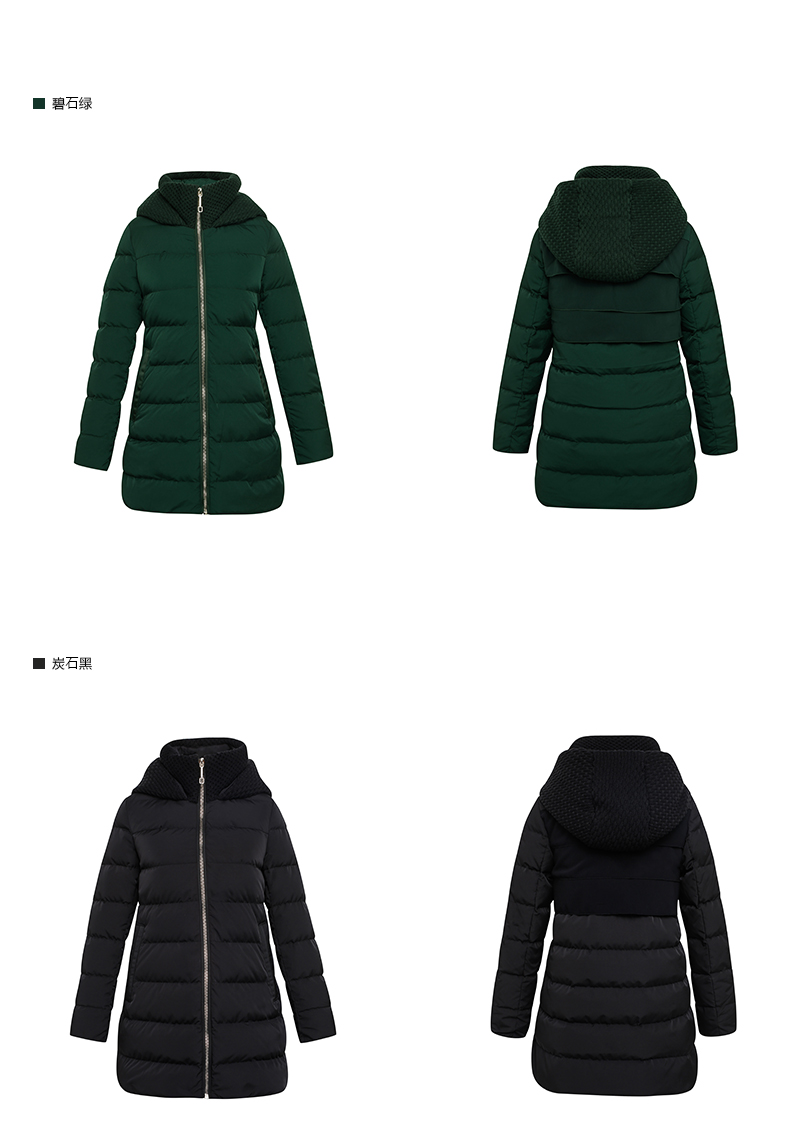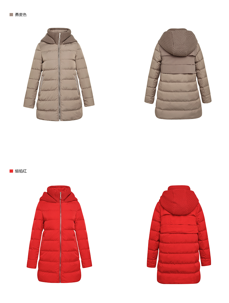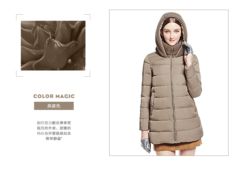 艾莱依2015冬新款针织拼接女中长款连帽修身纯色羽绒服ERAL6006D
