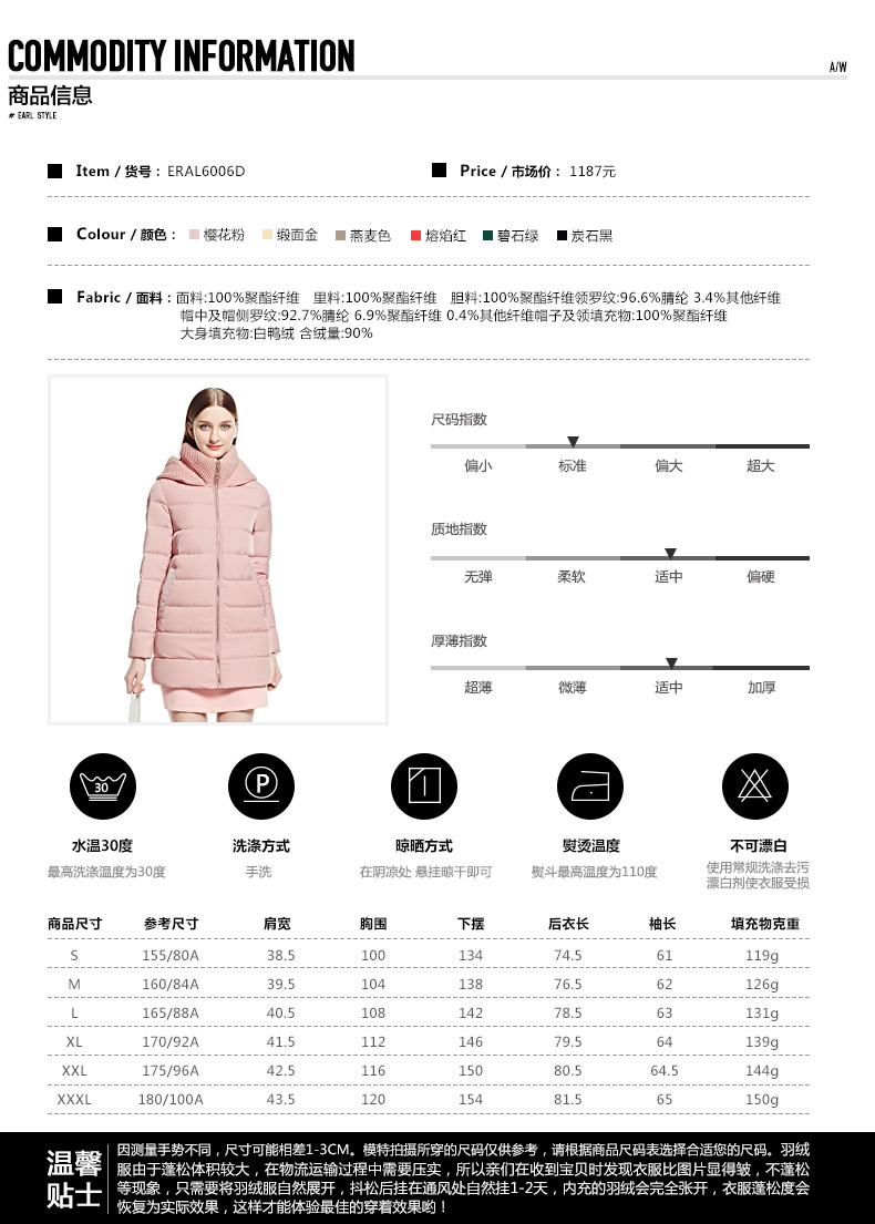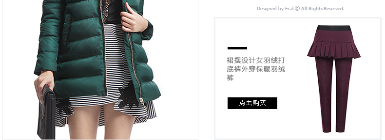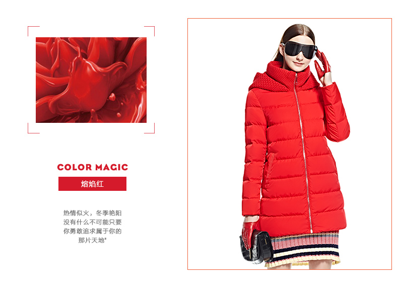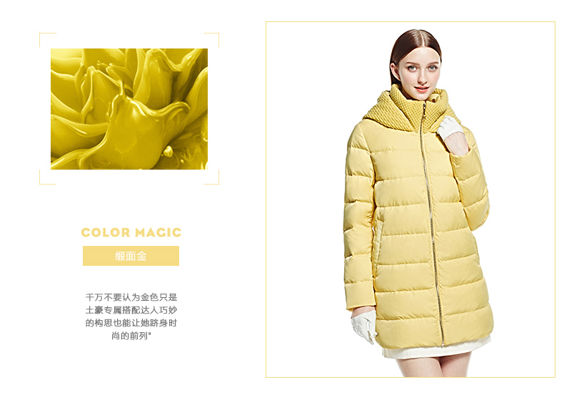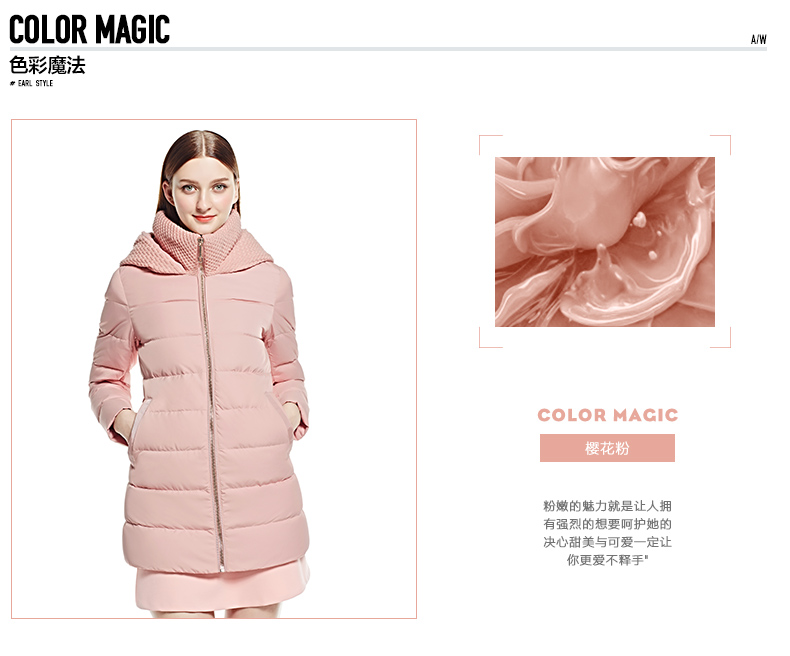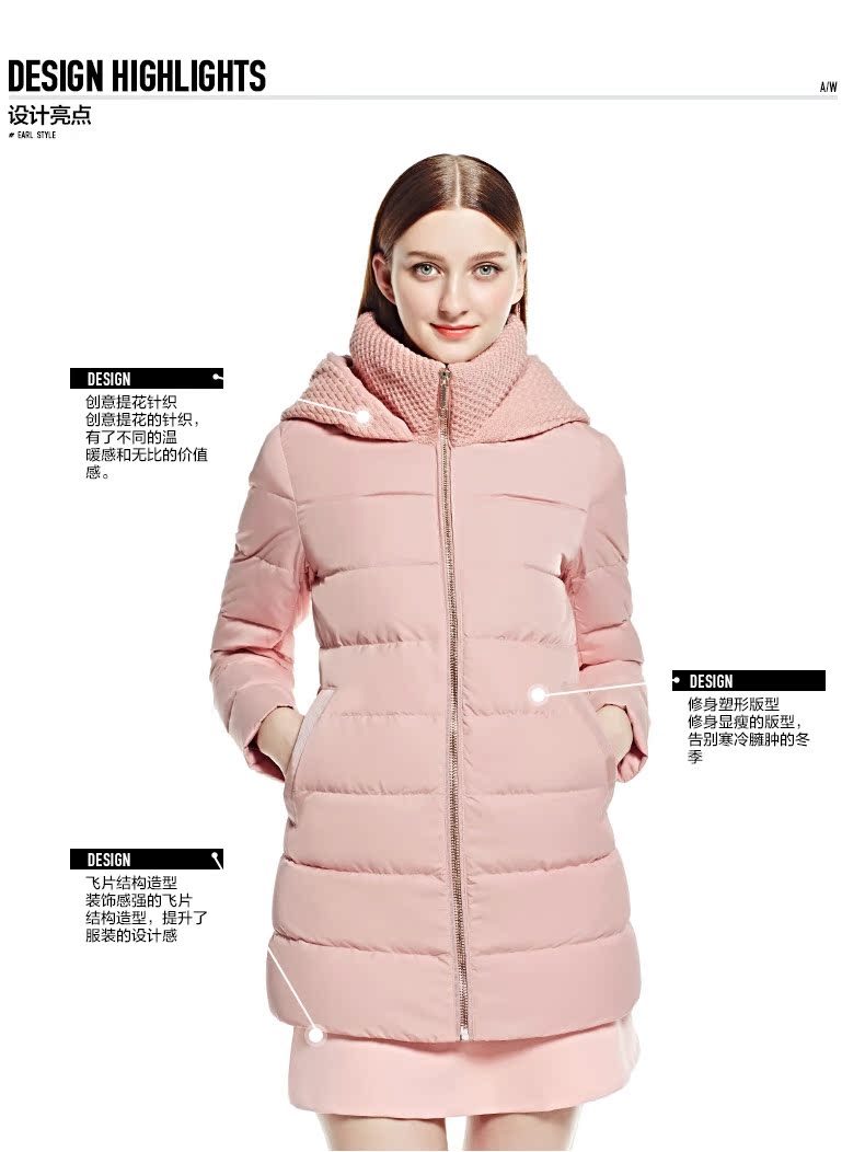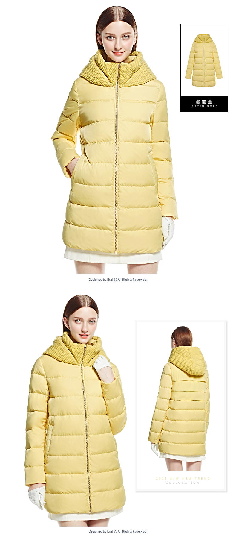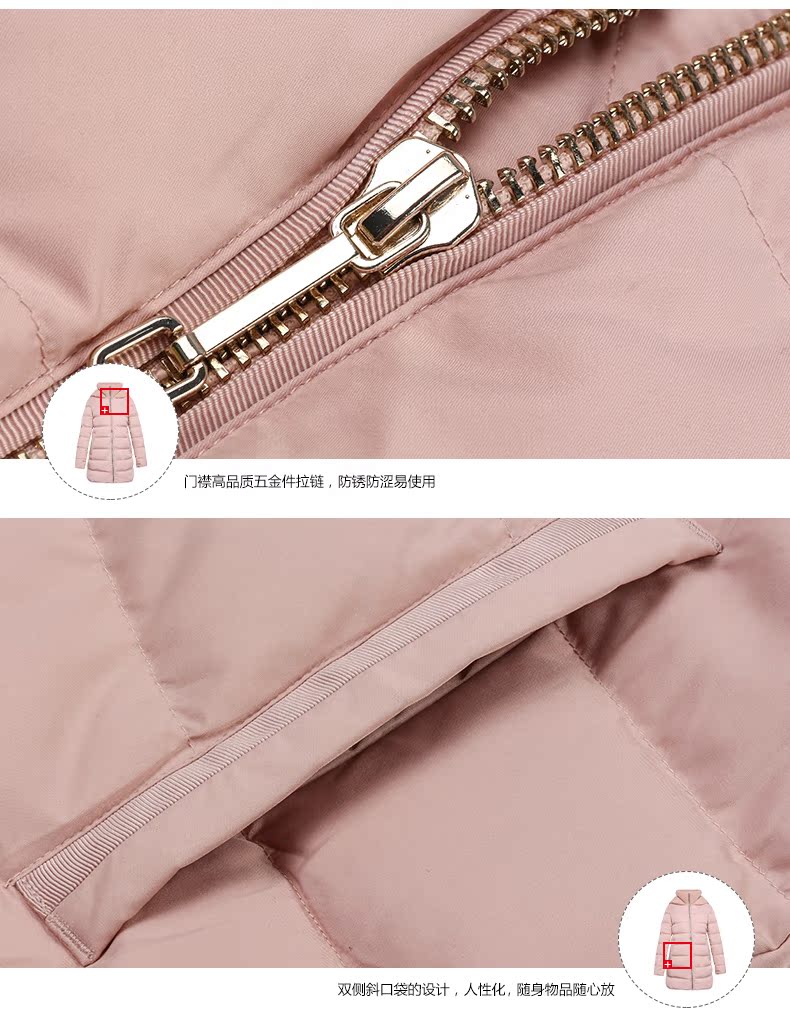 艾莱依2015冬新款针织拼接女中长款连帽修身纯色羽绒服ERAL6006D
