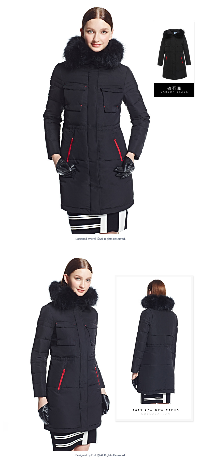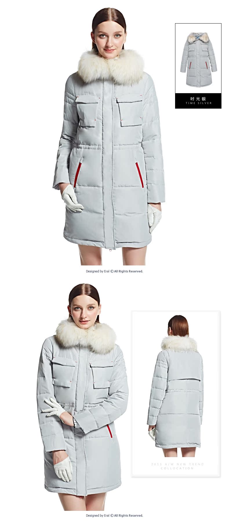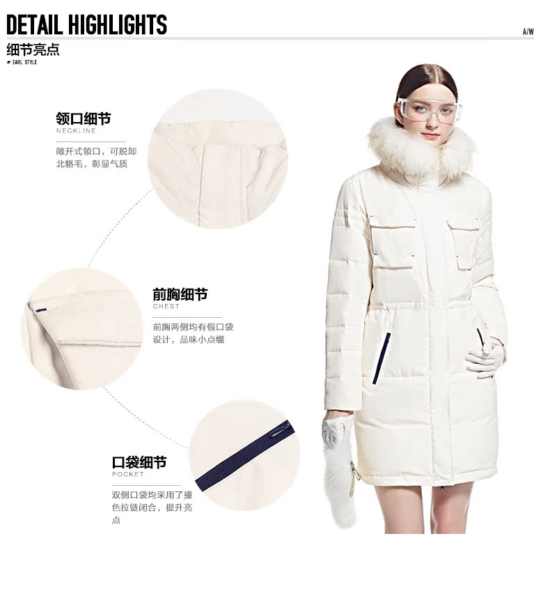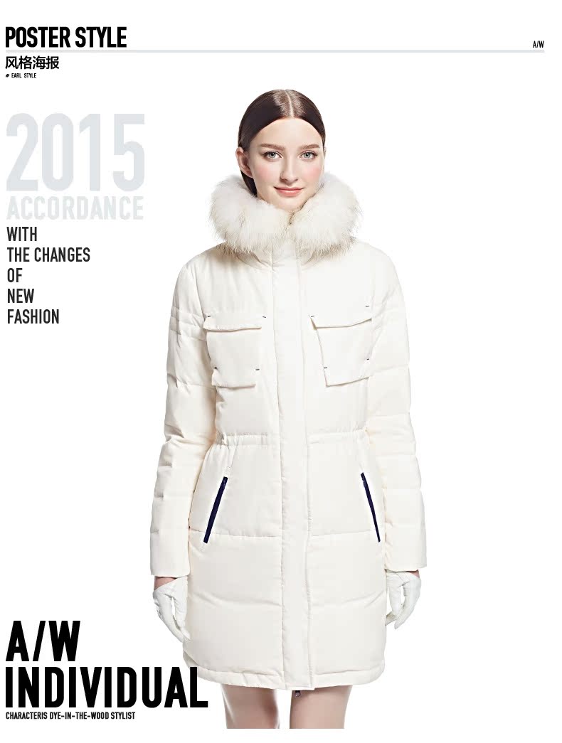艾莱依2015冬装新款ERAL6046D长款羽绒服