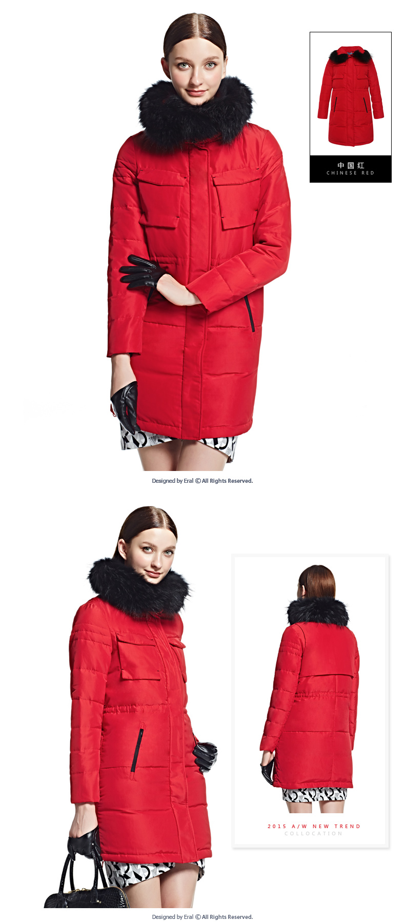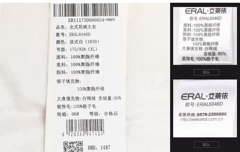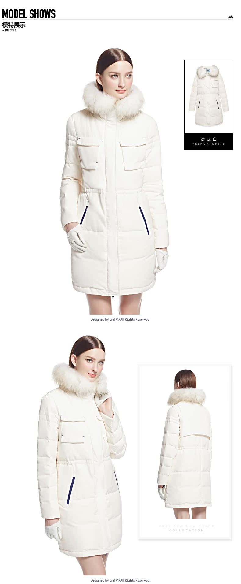 艾莱依2015冬装新款ERAL6046D长款羽绒服