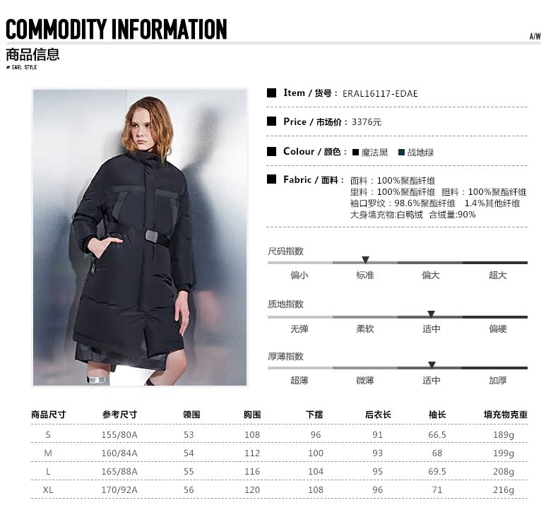艾莱依2015冬装新款ERAL16117-EDAE中长款羽绒服