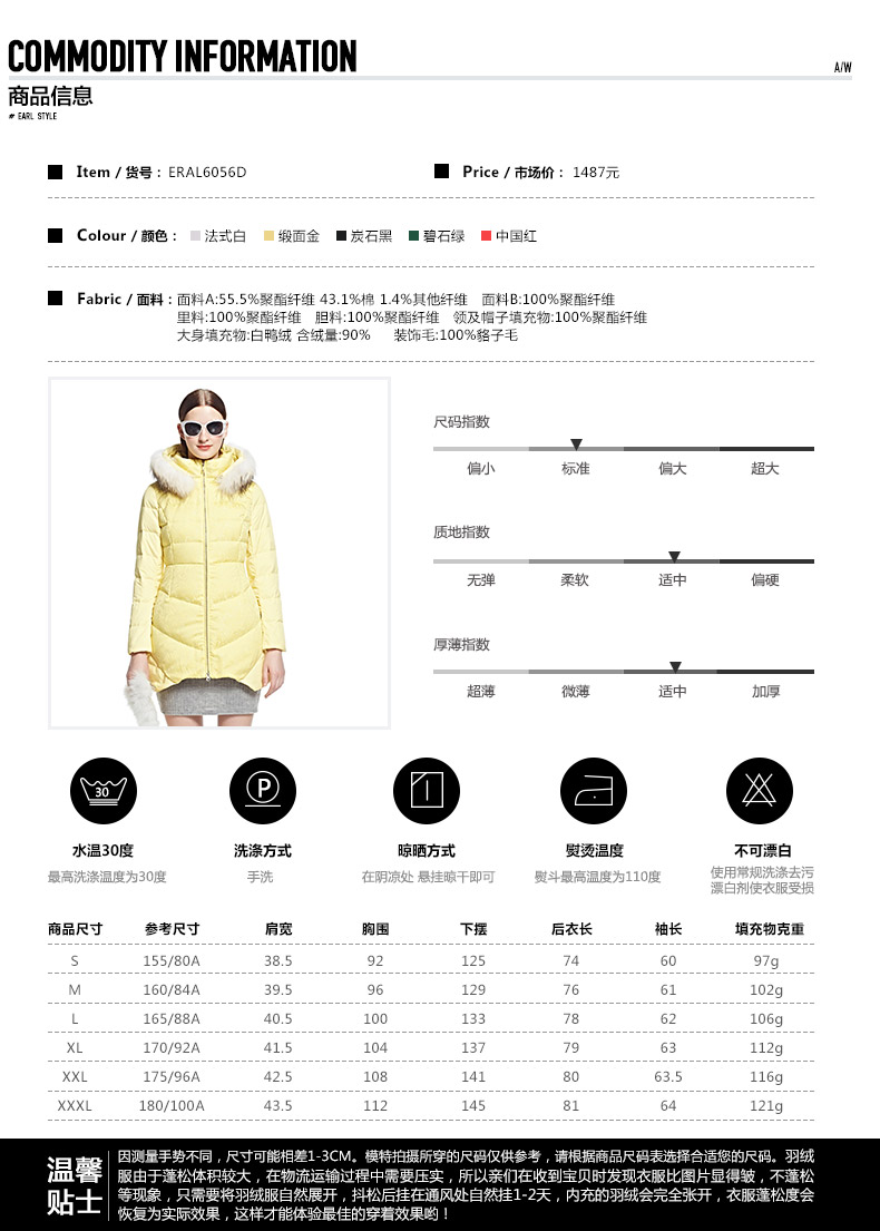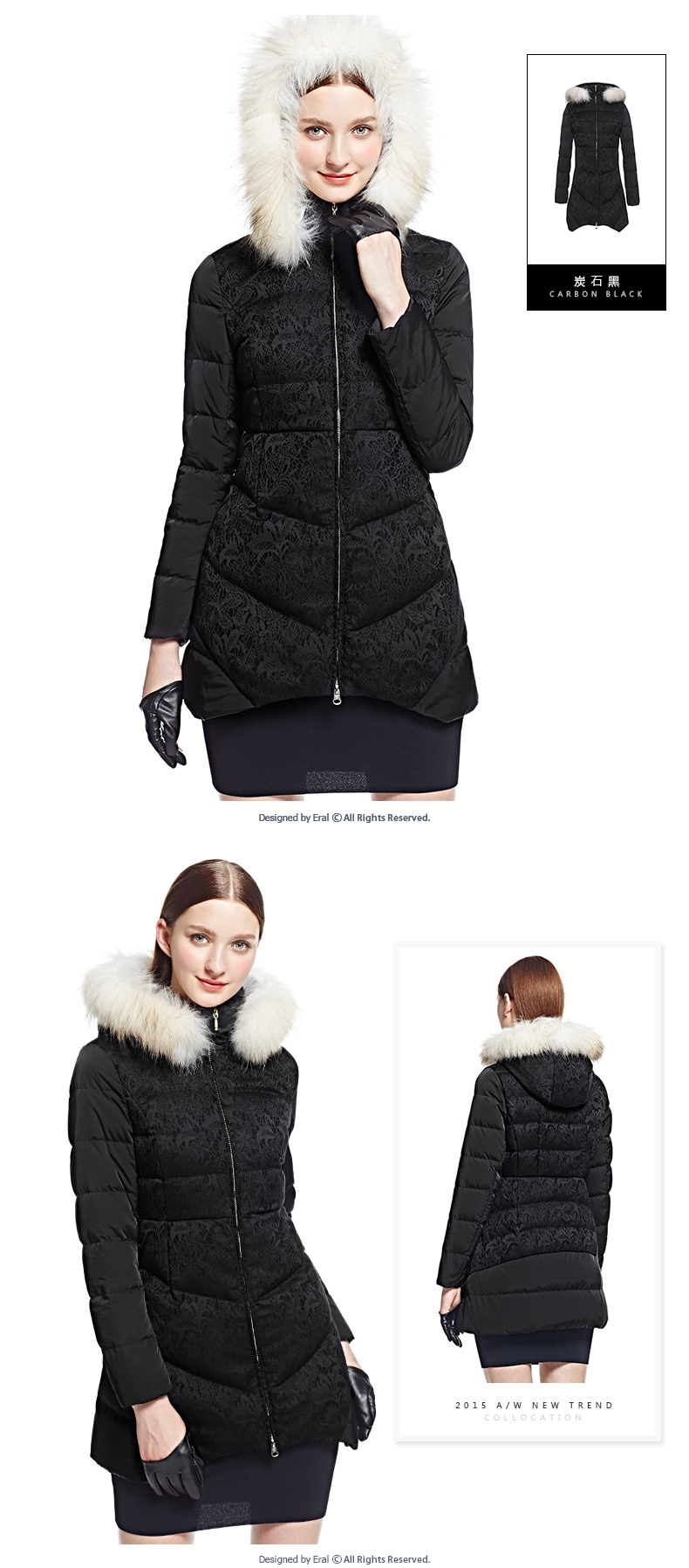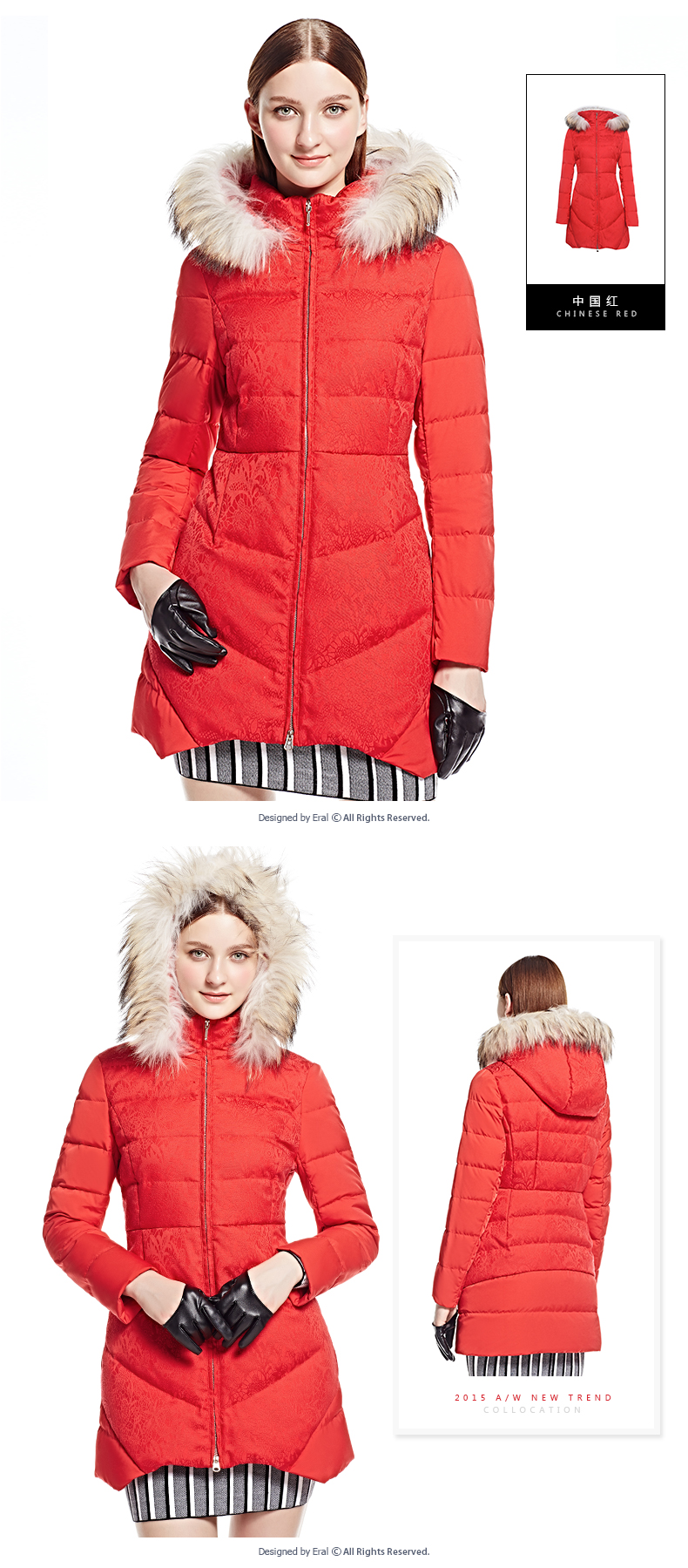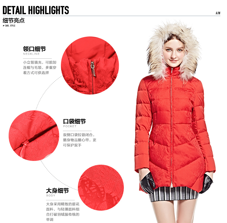 艾莱依2015冬新款 ERAL6056DD中长款羽绒服